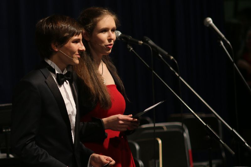 Durch das Programm des Abends führten Julia Kopatsch und Severin Brock, die das Publikum auf eine lockere und entspannte Weise mitnahmen auf eine musikalische Reise durch die Epochen und Musikstile. Zwischendrin mussten beide immer wieder in andere Rollen schlüpfen, waren sie doch auch Teil unterschiedlicher Formationen.