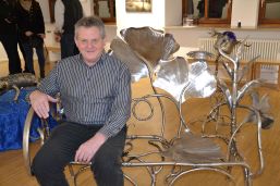 Als Gastaussteller hatte der Kunstkreis Ernst Eder aus Rinnberg (Rohrbach) eingeladen, der mit seinen Edelstahlskulpturen auch das Thema der Blauen Stunde einfing. Besonders seine Gartenbank mit Ranken und Blütenblättern diene sehr gut dazu, sich gegen Abend zu setzen und zuzusehen, wie sich der Tag dem Ende zuneigt.