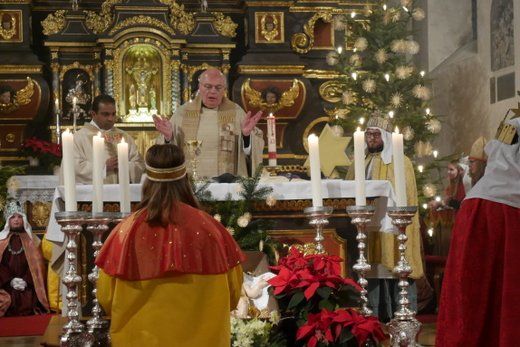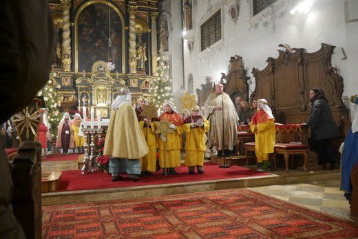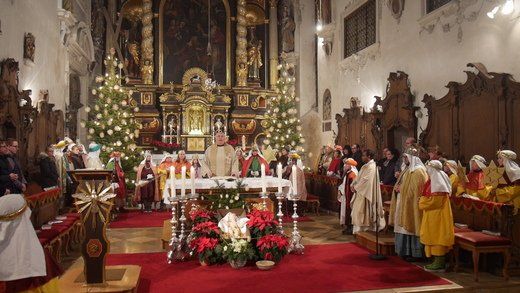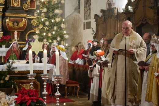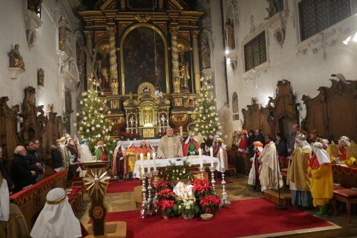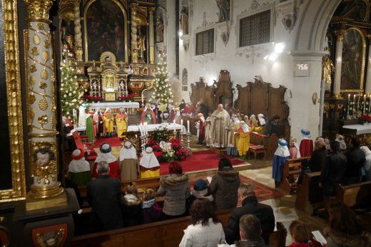 Für Stadtpfarrer Albert Miorin, war der Abschluss der Sternsingeraktion in Pfaffenhofen auch eine Premiere und so hielt er die Predigt entsprechend kurz um dem anschließenden kleinen Fest im Pfarrheim, auch genügend Zeit zu geben.