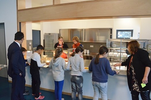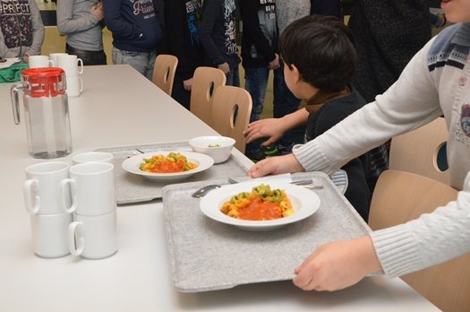 Die Speisen werden von einem Caterer aus Kösching warm geliefert und dann von Schulpersonal an die Kinder ausgegeben. Inklusive der Außenanlagen investierte die Kommune 1,1 Millionen Euro, 30 Prozent Zuschuss gab es vom Freistaat.