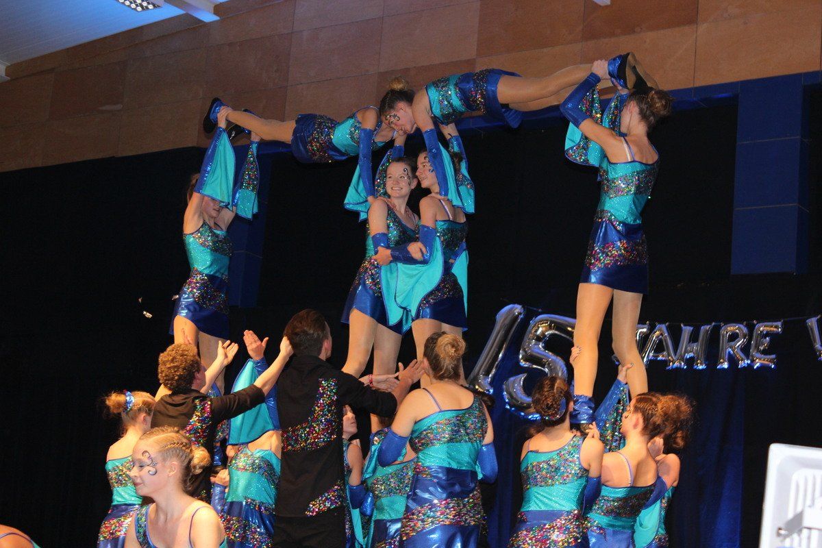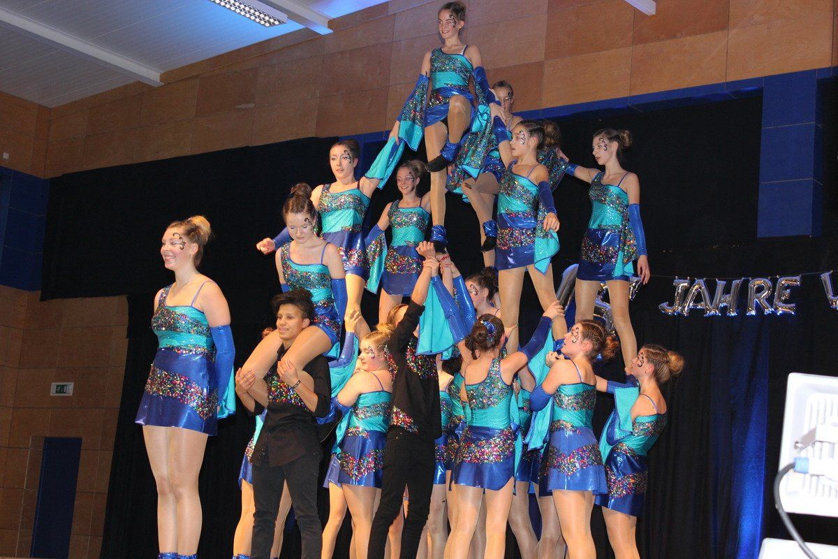 Sehr dynamisch und beweglich zeigten sich schon die Kleinsten, die von Eltern und Freunden kräftig angefeuert wurden. Ebenso sportlich und rasant ging es weiter mit den „Viva Teens“. In bunten Glitzerkleidchen wagten auch sie sich an Hebefiguren heran, die Teil ihrer minutiös einstudierten Choreographie waren.