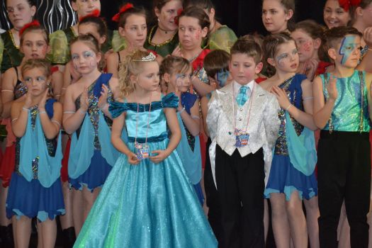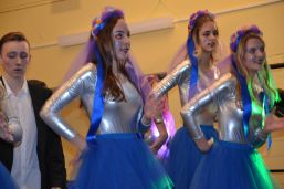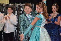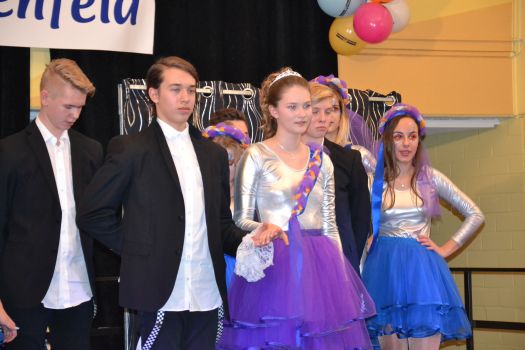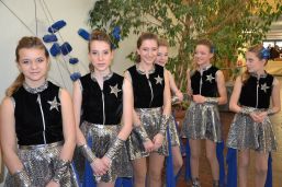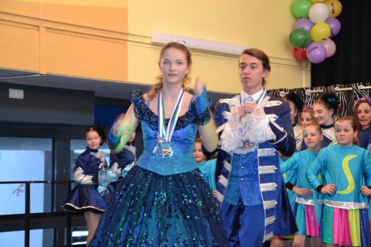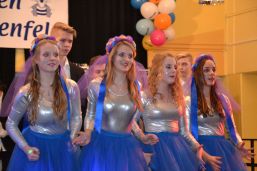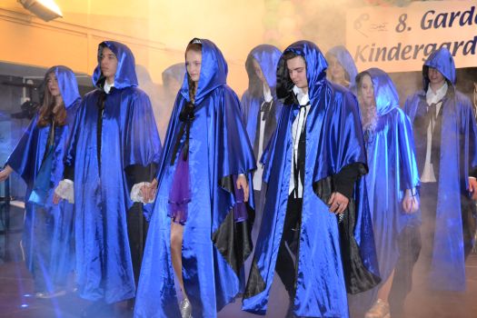 Und weil sich die Geisenfelder gegenseitig unterstützen, kam anschließend der gesamte Hofstaat der Geisenfelder Faschingsgesellschaft auf die Bühne und zeigte professionellen Gardemarsch und Showtanz mit Prinzessin Andrea I. und Prinz Herbert I., die natürlich auch einen wunderbaren Walzer aufs Parkett legten. Das Prinzenpaar der Geisenfelder Kindergarde, Prinzessin Anna-Lena I. und Prinz Max II. musste bei ihrem anschließenden Showteil nicht befürchten, im Schatten der Erwachsenen zu stehen, denn die beiden zeigten trotz ihres jugendlichen Alters bereits einen hervorragenden und eleganten Tanz. Auch der Gardetanz klappte hervorragend und war bestens von der Choreografie her abgestimmt, das galt auch für die Bambinis, bei denen zu merken war, dass einige von ihnen schon Tanzerfahrung in der Tanzschule hatten. Der Showteil begann dann gespenstisch mit verhüllten Gestalten in blauen Kutten und Nebel auf der Bühne, wobei die Truppe dann kurz hinter der Stellwand verschwand und die Mädels als Blumenfeen einen zauberhaften Tanz mit ihren Partnern aufs Parkett legten.