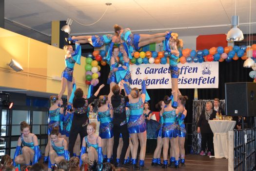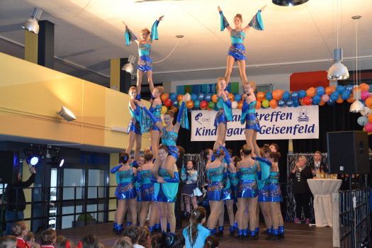 Aus Meilenhofen zeigten die Viva-Teens und „Minis“, dass schwierige, gewagte und spektakuläre Hebefiguren nicht nur den „Großen“ vorbehalten sind, sondern dass sie auch schon im jugendlichen Alter eine perfekte Show zeigen können. Oft stockte den Zuschauern der Atem, wenn die Mädchen auf der Spitze einer Pyramide sich plötzlich nach unten fallen ließen und von den anderen aufgefangen wurden. Bei flotten Rhythmen und einer tollen Choreografie lieferten sie das Glanzstück des Nachmittags.