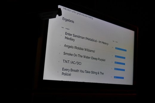 Aus über 130 verschiedenen Titeln konnte aus 13 angebotenen Stilarten, von Rock´n Roll, Deutschen Hits, Schlagern, Austro Pop, Wiener Walzer, Volksmusik oder Jazz, in aneinander gereihten Blocks, ausgesucht werden. Die Stücke mit der jeweils höchsten Stimmenzahl im online Voting, konnten dann gespielt werden. Mitklatschen und Tanzen war gewünscht und wurde rege betrieben, das Publikum war grandios.