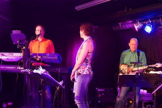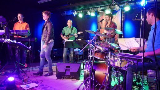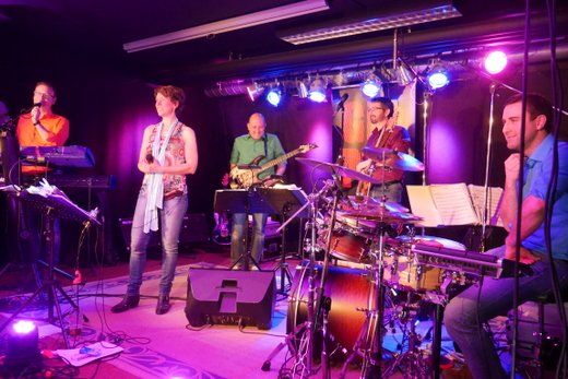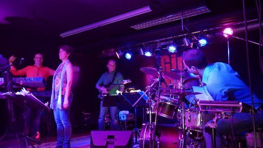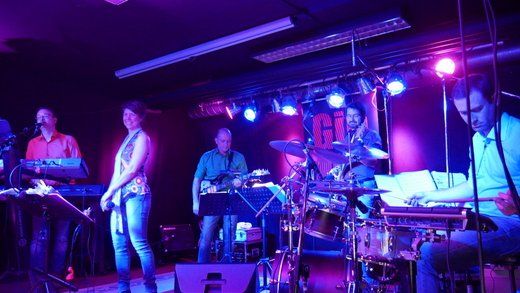 Hausherr Michael Herrmann führte durch das Programm und erzählte auch so manch schaurige Geschichte aus der Vergangenheit der Band. Gin Phonic, das sind, Martha Mayer – Gesang, Michael Herrmann – Gesang, Piano, Keyboard, Harry Grünwald – E-Gitarre, Christof Leichtl – E-Bass, Background-Gesang und Martin Luderschmid – Schlagzeug, Background-Gesang. Wer mehr haben will, bekommt auf Anfrage noch einen dreiteiligen Bläsersatz dazu.