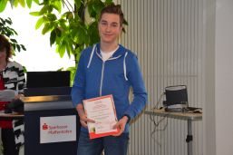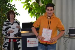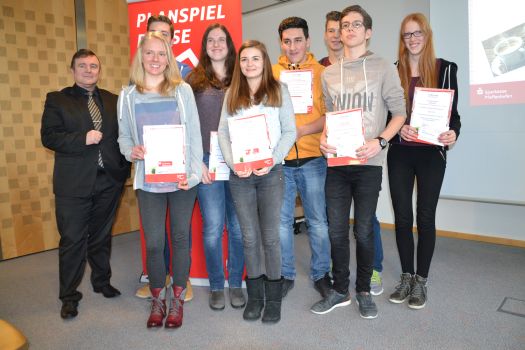 Aus dem Geschäftsbereich der Sparkasse Pfaffenhofen waren insgesamt 102 Teams mit 364 Schülerinnen und Schülern zum „Planspiel Börse“ angetreten, wobei sich nur 93 Teams qualifizieren konnten, von denen 42 Gruppen Gewinne an der Börse erzielen konnten.; sie hatten alle insgesamt 2.123 Aufträge zum Kauf/Verkauf erteilt, dabei erzielte das Siegerteam 11 Prozent Gewinn, das letztplatzierte Team macht 6 Prozent Verlust. Von Vorteil war natürlich, dass das ganze Spiel ohne Risiko für die Schülerteams war. Als Sieger stand am14. Dezember nach der endgültigen Abrechnung das Team „Business Brothers“ des Schyren Gymnasiums fest. Alle Team hatten sich eigene Phantasie-Namen ausgedacht. Das Sieger-Team erhielt heute einen Geldpreis von 250 Euro überreicht, zweiter wurde die „Senpai Corporation“ des Hallertau Gymnasiums, sie erhielten 150 Euro Siegerprämie und den 3. Platz belegte das Team „Cash Crashers“ des Hallertau Gymnasiums mit einer Prämie von 100 Euro. Die weiteren Siegerteams (in Reihenfolge) erhielten jeweils 50 Euro Prämie: „Lillifee“/Hallertau Gymnasium, „ekmekspor“/Mittelschule Vohburg, „diebumser“/Schyren Gymnasium, „Jungs mim skaaaf“/Schyren Gymnasium, „Nyx“/Hallertau Gymnasium, „börse16“/Hallertau Gymnasium, „MNELF“/Schyren Gymnasium. Außerdem gab es noch einen Preis von 100 Euro für das Team, das besonders Wert auf Nachhaltigkeit der Unternehmen gesetzt hatte: eine Prämie von 100 konnten das Team „Leberkäswirtshaftler“ einstreichen. Die Teamleiter nahmen Urkunde und Scheck entgegen.