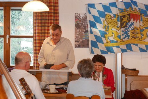 Initiatorin Uschi Kufer begrüßte im feinsten Dialekt die Gäste und ihre Musiker. Lesung und Musik, oder Gred und Aufgspuid, wia sis gherd, es lebe der Dialekt. Der Förderverein Bairische Sprache und Dialekte hatte extra einen Vertreter aus dem Vorstand nach Pfahofa gschikt, weil do immer a so vui los is. De Grod no Muse legte vor und Weiß-blau Muse nach, dazwischen erzählen Albert Schweiger, der bekannte "Sauhandler" aus Gambach, Kathi Radlmeier und Albert Lönner, Geschichten wie sie nur in Bayern passieren können.