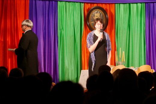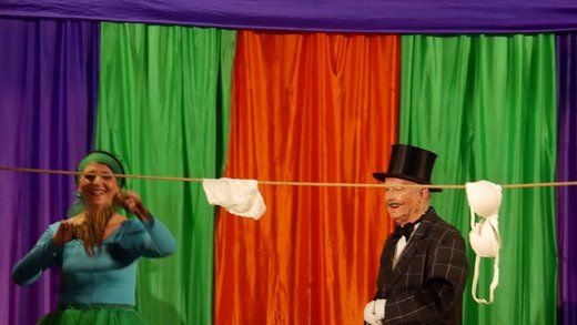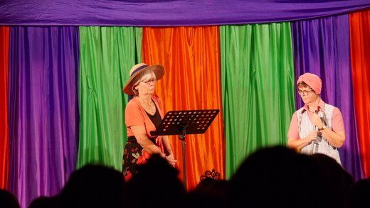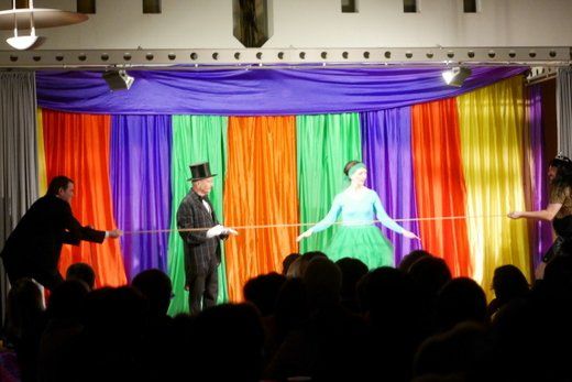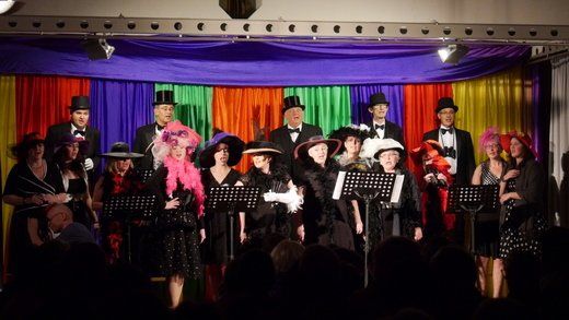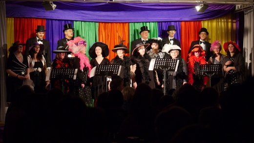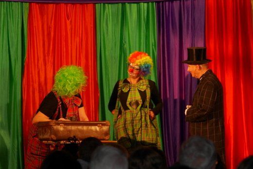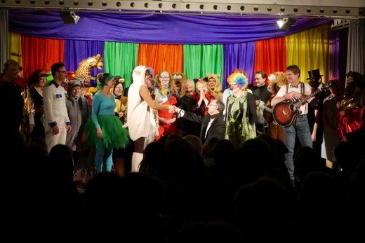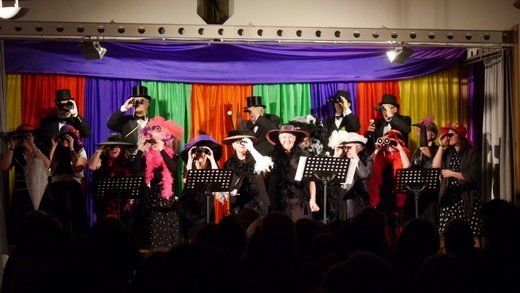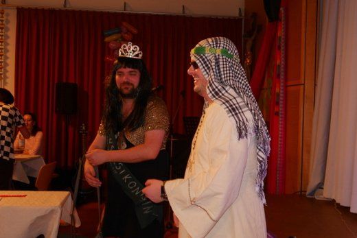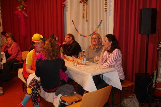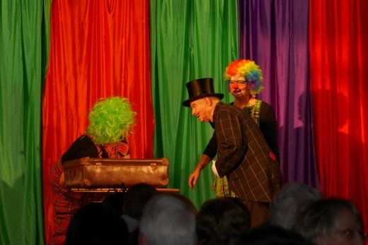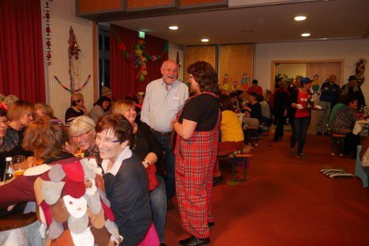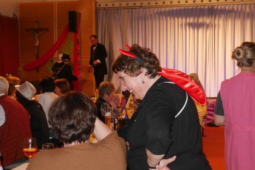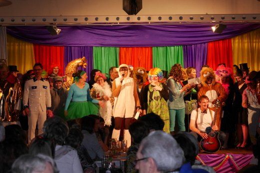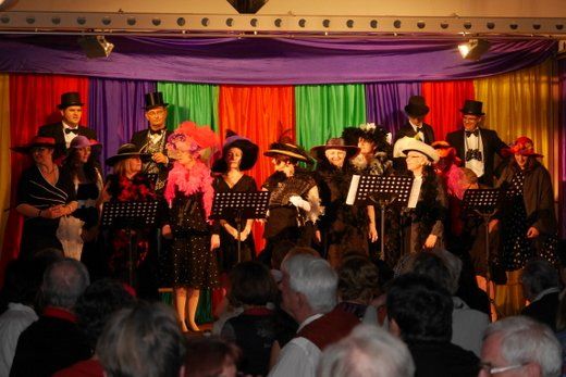 Die katholische Jugend hatte nichts zu sagen, bzw. ihre Clown Nummer kam auch ohne Text bestens beim Publikum an. Berufsstadtrat und Original in einer Person Florian Erdle, führte mit gewohnt spitzer Zunge durch das reichhaltige Programm. Ein Dinner for One in bayerischer Version „Die selbe Fetn wia jeds Johr?“ wurde aufwendig inszeniert. Warum es jetzt in Bayern so gut wie kein „Ü“ gibt klärten zwei Mitglieder des Frauenbundes auf. Der Kirchenchor „Die Emporenspatzen“, ließen die Gründerjahre und die Stimmung auf einer englischen Rennbahn von der Bühne schwingen.