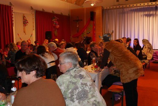 Den krönenden Abschluss machte der Zirkus Giovanne Baptista gleichzusetzen mit dem anwesenden Pfarrgemeinderat, nur im anderen Outfit. Es war sich wie immer kaum einer zu Schade die große Faschingssause mitzumachen, die Tierkostüme ließen den Schweiß in Strömen laufen und der Kaplan war voll mit dabei. Stadtpfarrer Miorin oder kurz Albert, wie es ihm am liebsten ist, hatte leider migränebedingt Spielpause am Klavier, gelobte jedoch einen Theaterauftritt beim nächsten Fasching nachzuholen.