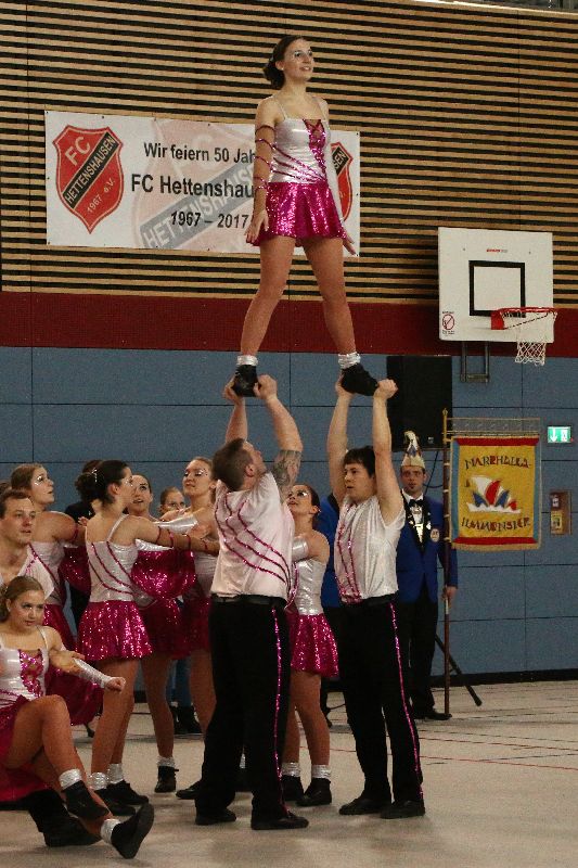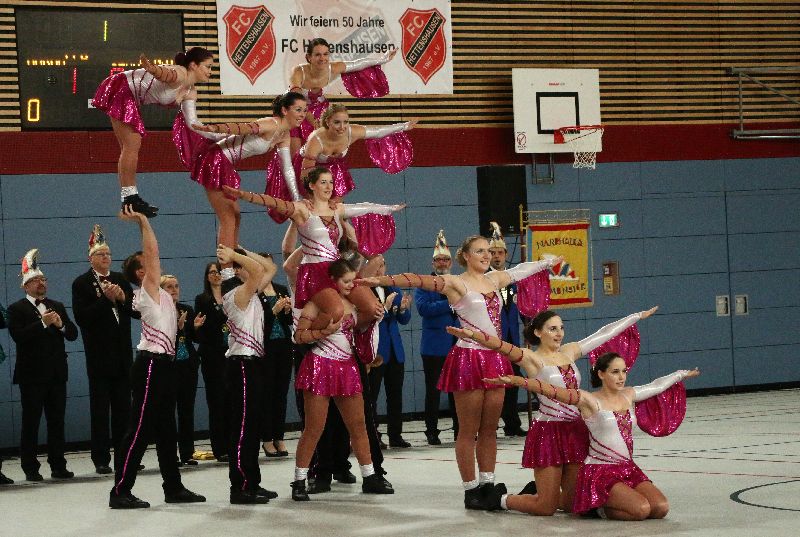 Nach dem obligatorischen Prinzenwalzer - vorgetragen von Ihrer Lieblichkeit Prinzessin Carina II. und Seiner Tollität Prinz Georg I. - erlebten die Zuschauer das akrobatisch wie choreographisch ansprechende Showprogramm der Garde. Zuvor wurde die Gelegenheit genutzt und dem Jugendleiter Florian Lux der Orden 2017 der Faschingsgesellschaft in Anerkennung seines ehrenamtlichen Einsatzes für die Fußballjugend und als Dankeschön für die Einladung verliehen. Vermittlerin für den Garde-Auftritt dürfte bei alledem auch die 1. Präsidentin der Narrhalla Ilmmünster, Marion Summerer, gewesen sein, ihres Zeichens auch in der Vorstandschaft des FC Hettenshausen aktiv.