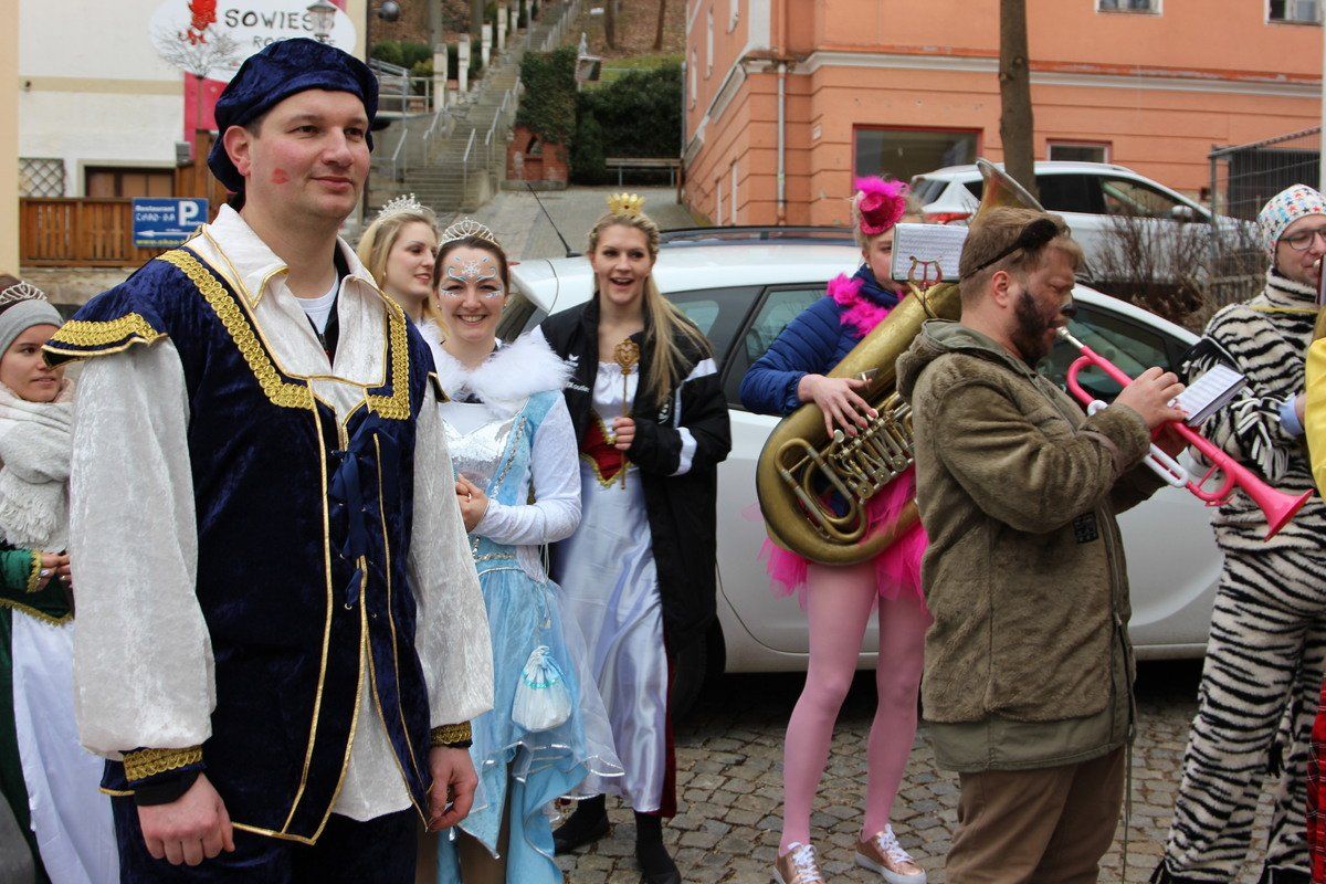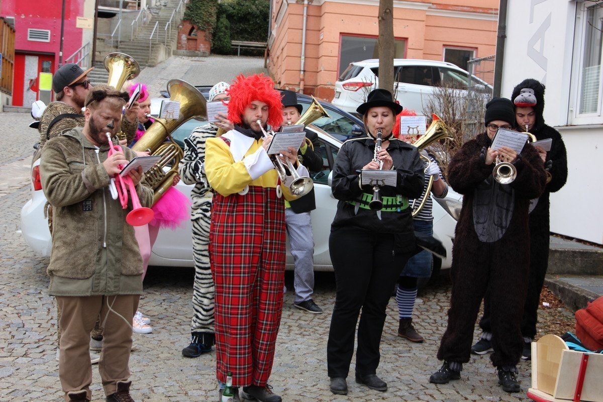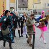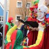 Die Gardemädchen bezauberten die Zuschauer als Burgfräulein, und der Elferrat in lustigen, farbenfrohen Clownkostümen. Die Kapelle, die den närrischen Zug anführte, hatte sich ebenso in Schale geschmissen und spielte trotz Windes und ohne Pause Stimmungslieder.