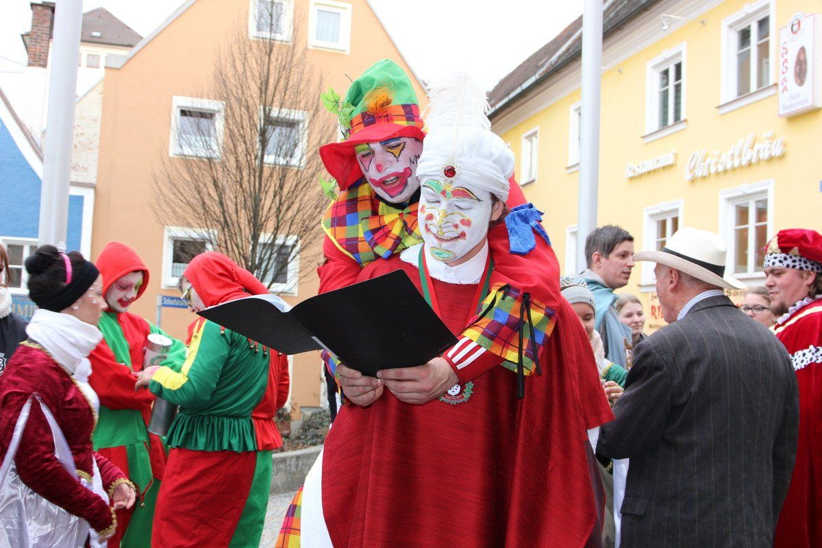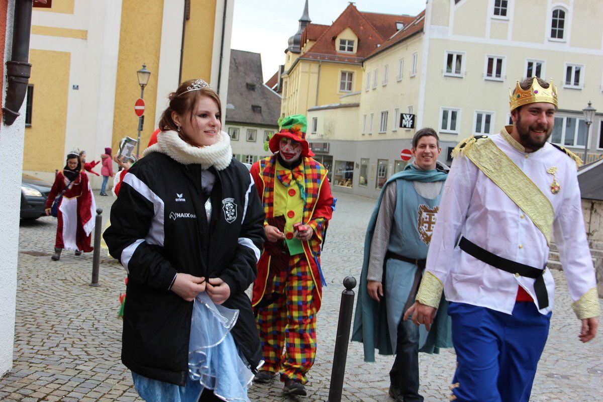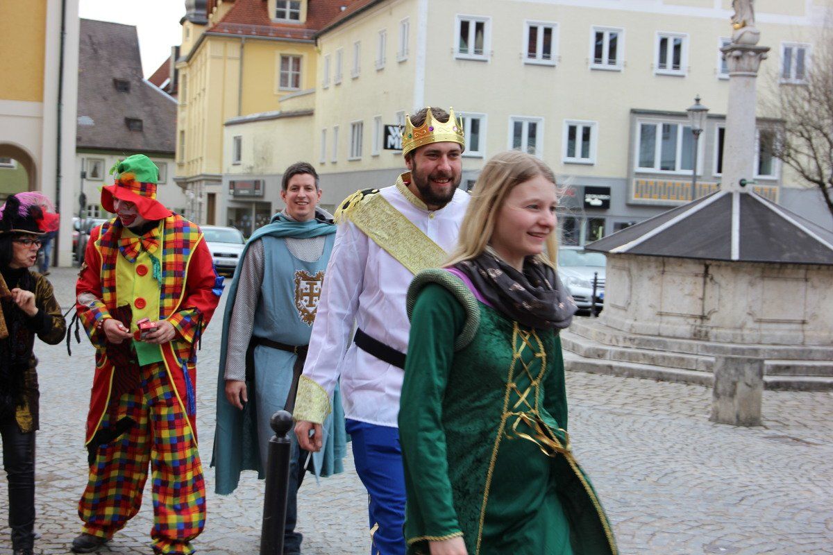 Der Prinz kam zwar nicht auf einem weißen Schimmel angeritten, doch dafür rief die närrische Gefolgschaft mit Pauken und Trompeten den totalen Fasching aus. Außerdem hat Prinz Thomas - diesmal in Ritterkostüm - ja schon seine Prinzessin Diana erobert und diese folgte ihm auf dem Fuß, wie auch die gesamte närrische Gefolgschaft der Narrhalla Mainburg um Präsident Florian Geser, der seinem Namen in Königskostüm alle Ehre machte.