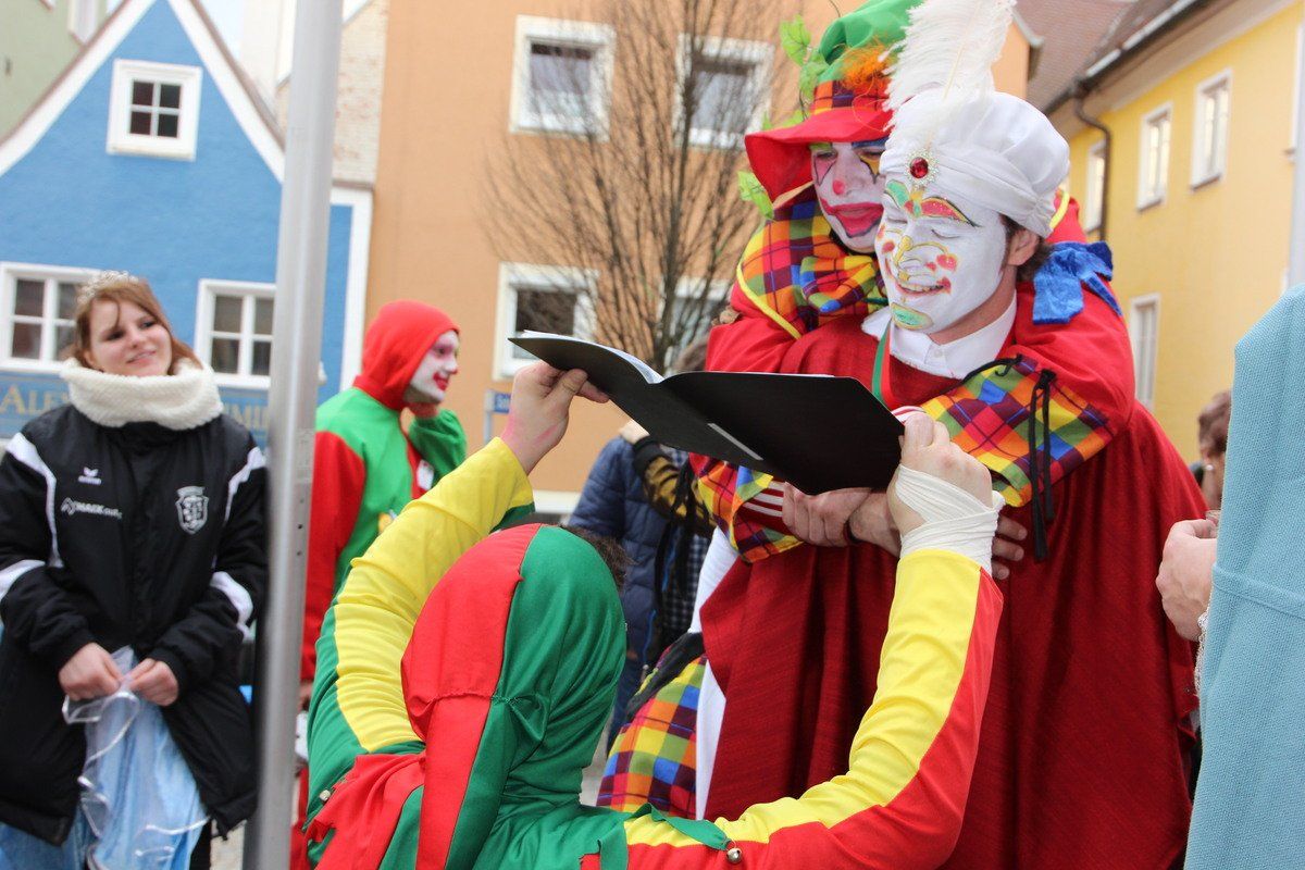 Insgesamt 14 Stationen steuerten die fröhlichen Narren an, wo man sie überall mit einem großen Hallo begrüßte und einer ordentlichen Brotzeit versorgte. Egal ob in der Sparkasse, der Volksbank, der Hypo-Vereinsbank oder der Verwaltungsgemeinschaft.