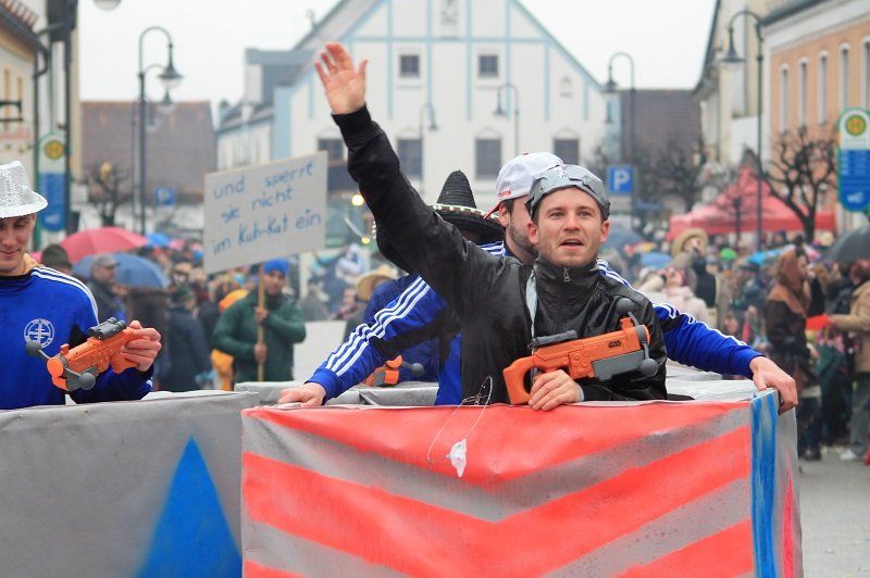Eigentlich waren die Bedingungen für den Faschingsumzug 2017 in Nandlstadt ja nahezu perfekt. Für gute Musik, gutes Essen und reichlich Unterhaltung sorgten die Veranstalter. Außerdem war gefühlt der ganze Freisinger Landkreis da – nur das Wetter wollte nicht so ganz mitspielen. Bereits vormittags begann es zu Regnen, was sich auch den ganzen Tag, bis auf weniger kleiner „Regenpausen“ nicht änderte. Doch dass die Nandlstädter nicht aus Zucker bestanden, zeigten sie trotzdem und feierten, was das Zeug hielt.