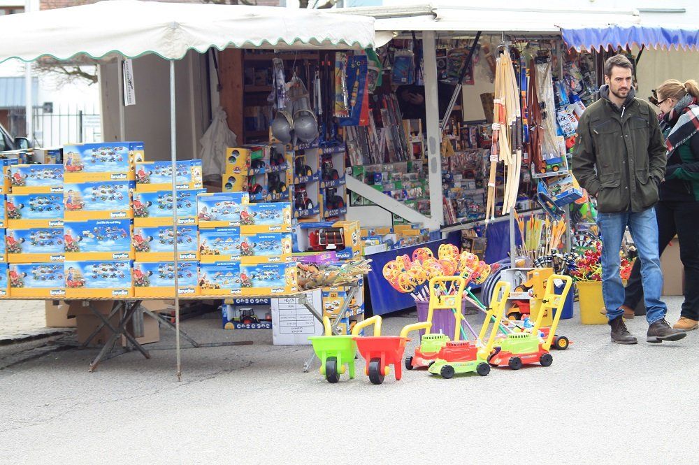 Die Angebote der Verkäufer waren vielfältig. Vom Mini-Rasenmäher für die Kinder, dem Gürtel für den Vater bis zu den Klamotten für die Mutter und darüber hinaus sorgten die Stände für den Hunger zwischendurch, oder auch das Abendessen, für das man so manches Schmankerl erwerben konnte. Denn neben der Pommesbude fand man auch Käse-, Obst-, Gemüse- , den klassischen Süßigkeiten- und weitere Stände.