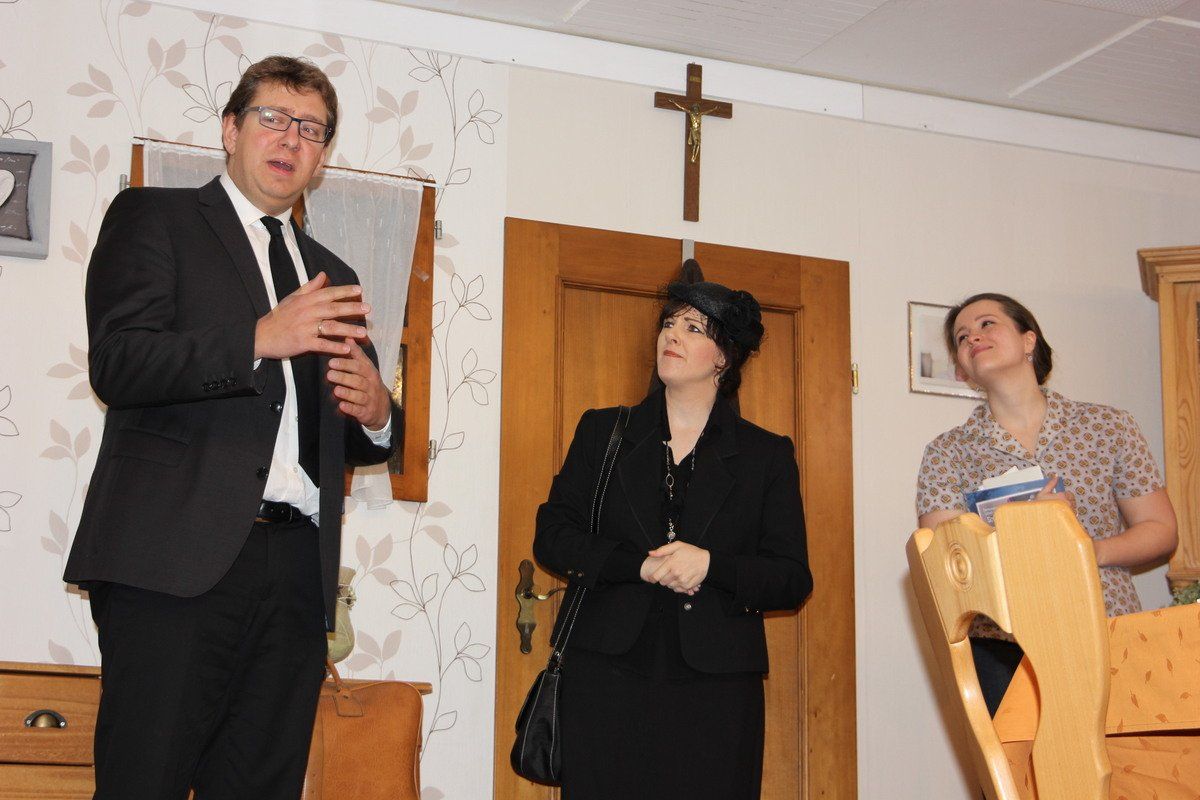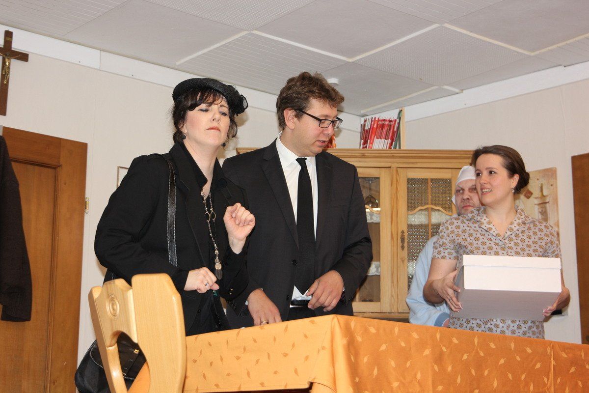 Beim Bömmerl handelt es nämlich um eine ziemlich harte Nuss. Er will, schon allein wegen seiner Tochter Anna (Stefanie Gruber), nicht wahrhaben, dass er tot ist. Es geht ihm einfach alles zu schnell, er will dem iridischen Leben noch nicht den Rücken zukehren. Dann kommt auch noch die unverschämte Verwandtschaft in Gestalt von Bömmerls Cousin Froschmeier (Andreas Lettenbichler) und seiner Alten (Sabine Janker) daher und überschütten die trauerende Familie mit geheuchelten Beileidsbekundungen.