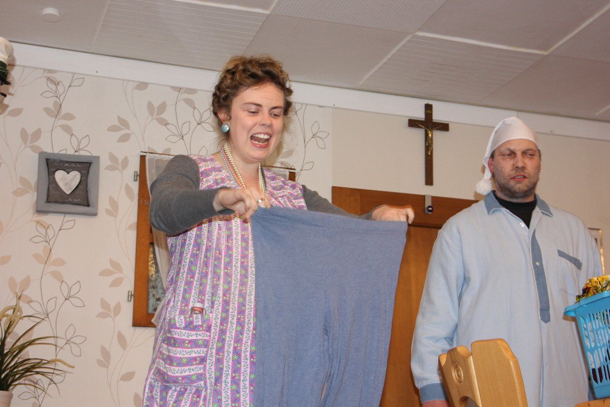 Zwei Engel in spe - davon ein ehemaliger Polizeibeamter in weißer Feinrippunterhose - die schrullige „Himbeer Resi“ und die hinterlistigen wie geldgeilen Verwandten namens „Froschmeier“ waren nur einige der urigen Charaktere eines äußerst lustigen Theaterstücks, mit dem die Theaterfreunde aus aus Großgundertshausen zu einem Frontalangriff aus die Lachmuskeln des Publikums ausholten. Dementsprechend viel Applaus gab es für „Da Himme wart ned“.