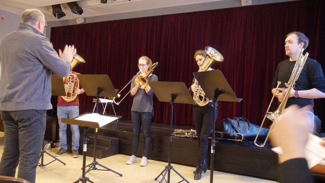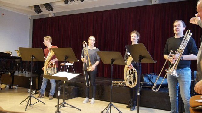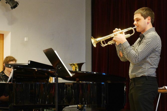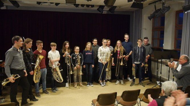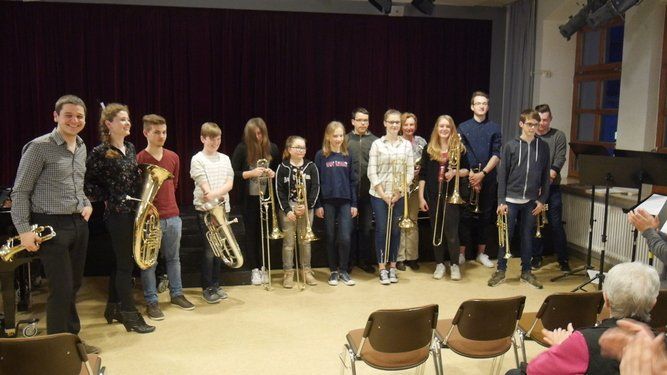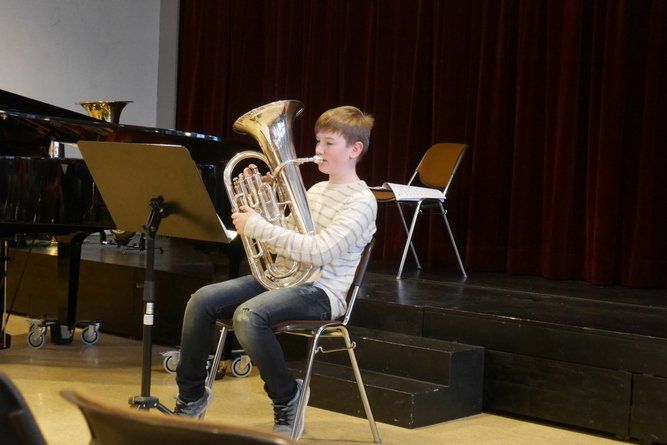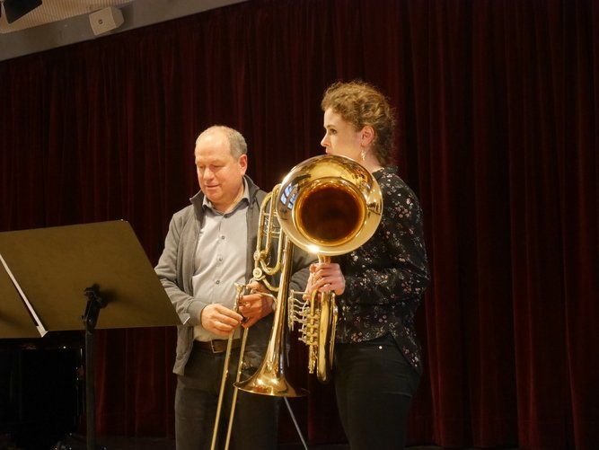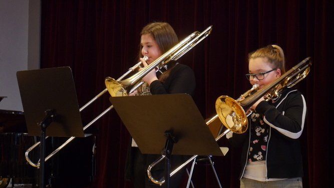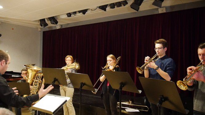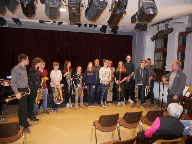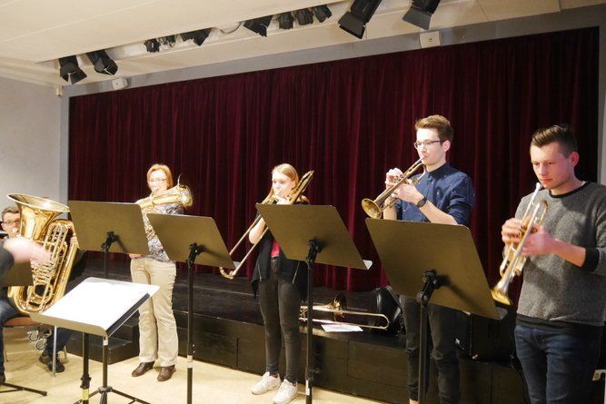 Die Blechbläserabteilung der städtischen Musikschule Pfaffenhofen, gab ein Vorspiel der Klassen von Herrn Reinhard Greiner und Herrn Auwi Geyer. Zu hören waren Trompete, Posaune, Bariton, Tuba – von Solo bis Ensemble.