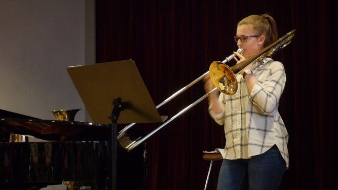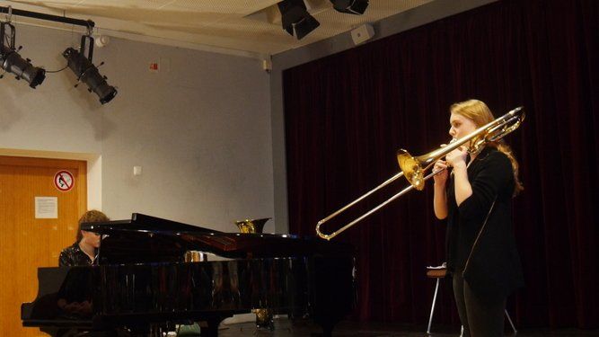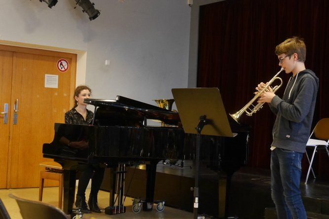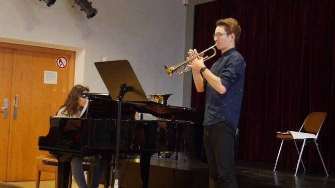 Weiter Solisten am Bariton, Korbinian Märkl, Daniel Sauer (Trompete), Sarah Baumgartner (Tuba) und Luisa Geier (Posaune) spielten nicht gerade einfache Stücke. Xaver Sailer (Trompete) brachte mit seiner Schwester derart viele Noten ins Spiel das seine Schwester am Klavier richtig ins Schwitzen kam. Sandra Nothnagel bestand mit ihrem Stück auf auswendiges Spiel, das sie hervorragend beherrschte.