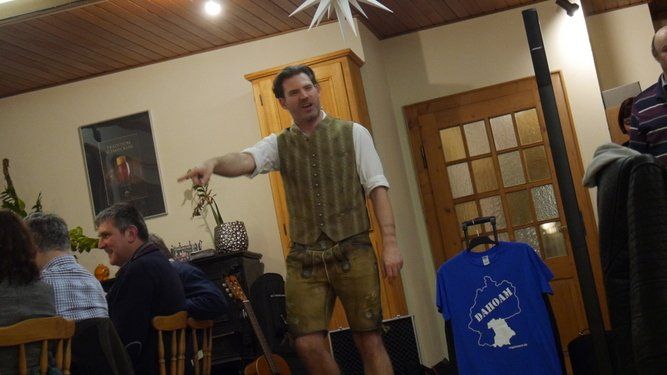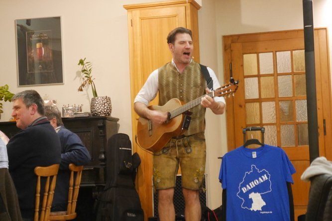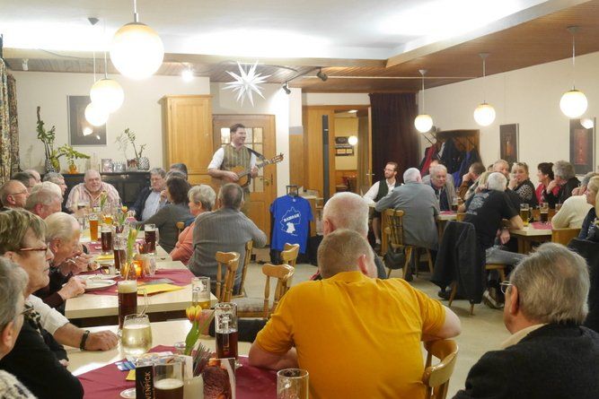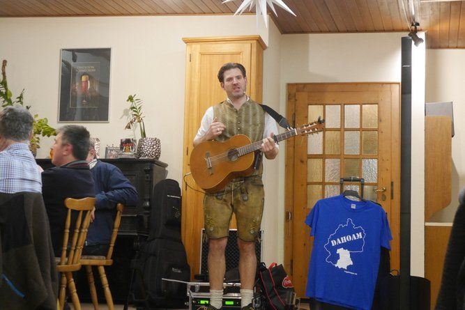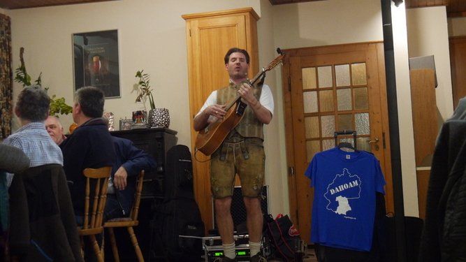 Einige Gäste durften sogar lautstark beim recht vielseitigen und teilweise deftigen Programm des Mundartbarden mitspielen. Böse Witze über Einarmige beim „second hand“ Laden, Rentnererfahrungen im Bordell, oder dem gescheiterten Versuch aus einem Österreicher einen Deutschen zu machen.