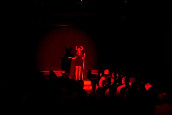 Das Schyren-Theater unter der Leitung von Richard Fischer und Ruth Knoll wagte sich an den bekannten Stoff der Faust-Legende, in einer Bearbeitung von Bernd-Klaus Jerofke. Mit der Überschrift "Erkennen, was die Welt im Innersten zusammenhält" geht er einen Pakt mit dem Teufel ein, der ihn letztendlich in die Hölle führt.