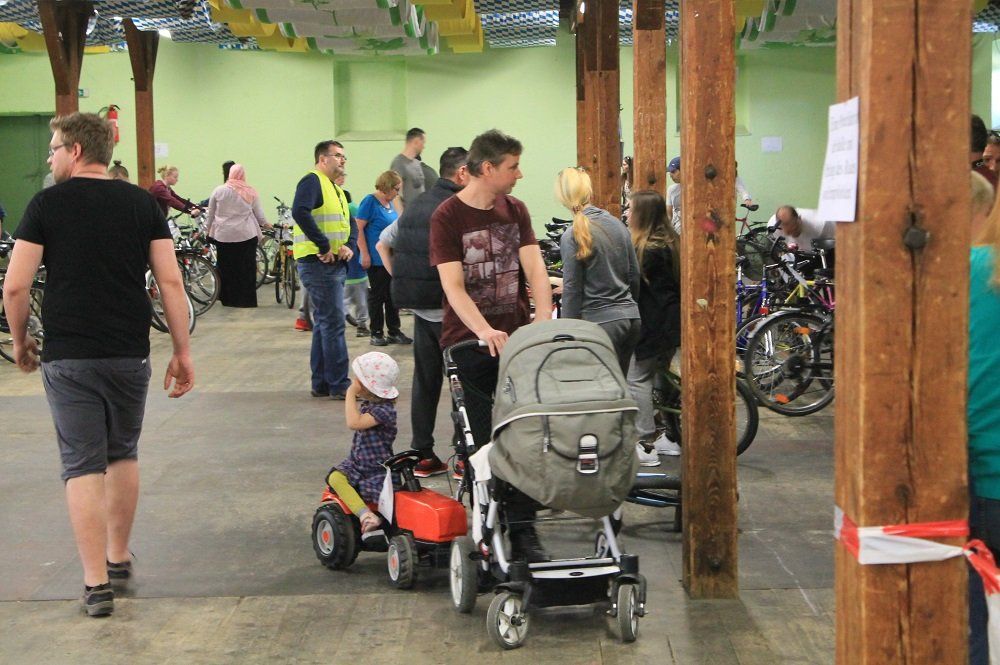 Den ganzen restlichen Tag glich die Hopfenhalle einem Wochenmarkt: Prüfen, Rechnen, diskutieren, oder auch gleich Probefahren in der Halle. Die Freude über das „neue“ Gefährt war vielen Kindern und auch Eltern förmlich ins Gesicht geschrieben.