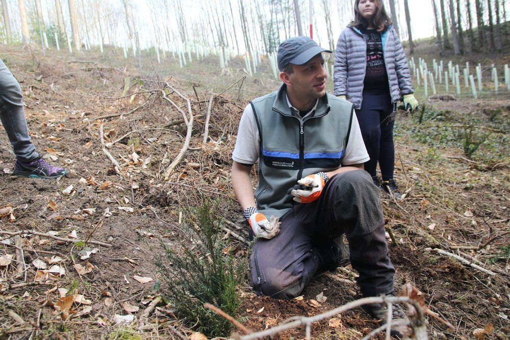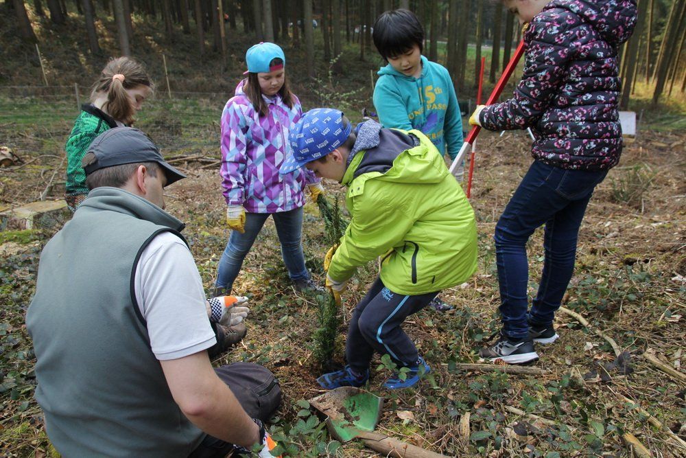 Es war Unterricht der etwas anderen Art, denn die Schülerinnen und Schüler saßen nicht hinter ihren Schulbänken, sondern konnten sich mit dem Thema Wald ganz hautnah auseinandersetzen. Dabei durften sie nicht nur selbst Eiben pflanzen, sondern brachten so ganz nebenbei auch noch vieles über den Wald in Erfahrung.