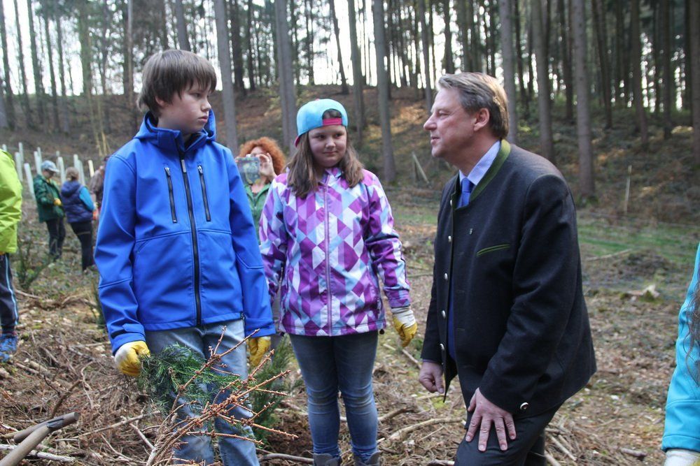 Auf einer Fläche von rund einem halben Hektar, auf dem die Bäume zuvor wegen Borkenkäferbefall gefällt werden mussten, durften die Schüler dann selbst zum Spaten greifen und die kleinen Setzlinge in den Boden bringen. „Im Rahmen der Umwelterziehung ist das wirklich eine tolle Aktion“, so Lehrerin Lydia Zeller. „Damit wird das Bewusstsein für die Umwelt im Allgemeinen und für den Wald ganz speziell geschärft.“