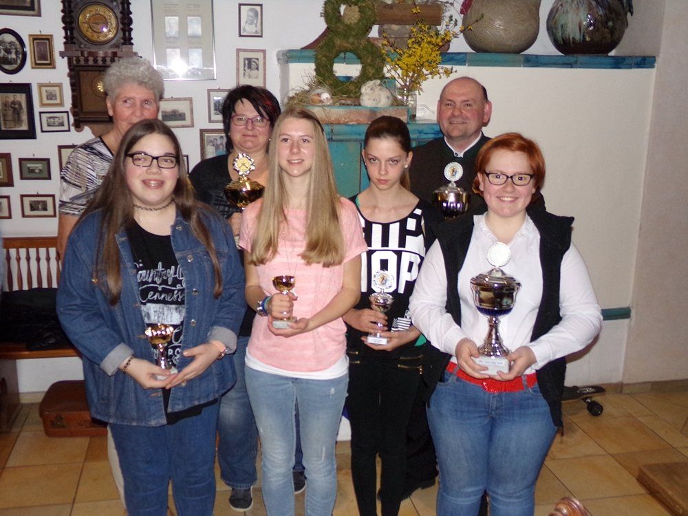 Bei der Jugend gewann den Wanderpokal Lutz Julia mit 91,90 Ringen, auf Platz 2 Binner Eva mit 88,63 Ringen, Platz 3 erreichte Kügler Johanna mit 77,77 Ringen im Jahresdurchschnitt.