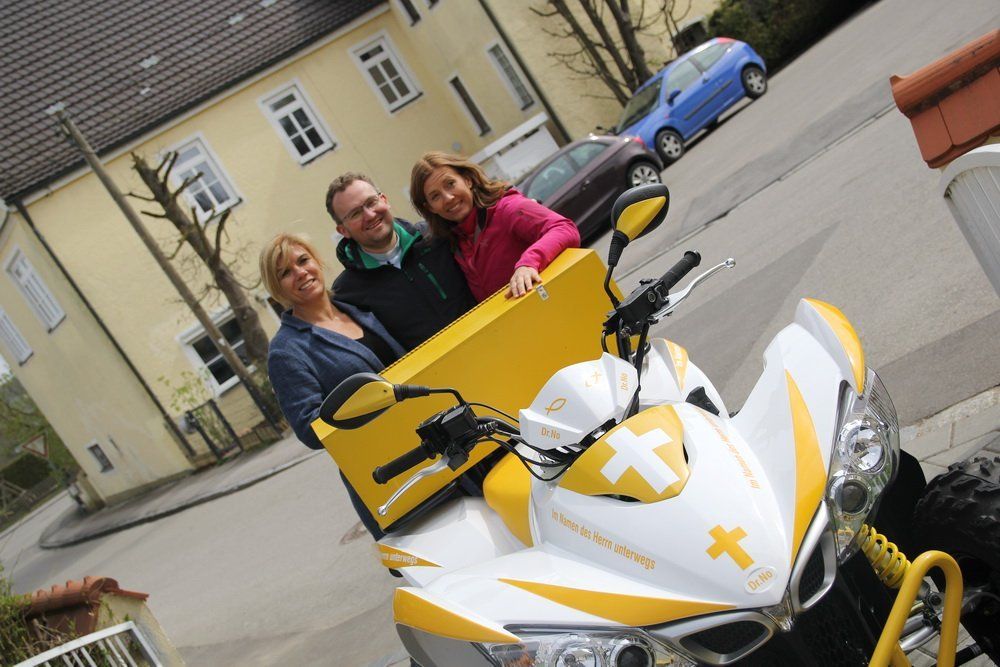 V.l.: Redakteurin Tanja Arnold, Pfarrer Nowak und Laufpatin Andrea Otto