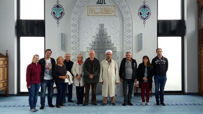 Die offene Moschee zog natürlich auch viel Pfaffenhofener an. In vielen kleinen und großen Führungen wurde der lichte Bau und seine Funktionen erläutert. Was sehr gut ankam war die nach außen offene Architektur, hier will keiner etwas verbergen oder in Dunkelheit beten. Gemeinsam mit Imam Ayhan Aydin erzählte Mevlut Kaya vom Gemeindevorstand, über die Geschichte der neuen Moschee. Die Namen der Propheten in der herrlich bemalten Kuppel, der Platz für die Frauen im Obergeschoß, der Platz des Imams, Teppiche, Gebetsketten oder die elektronische Anzeige für die Gebetszeiten. Wer zur richtigen Zeit anwesend war, konnte dem Ruf des Imams lauschen und ein klein wenig im Orient verweilen.