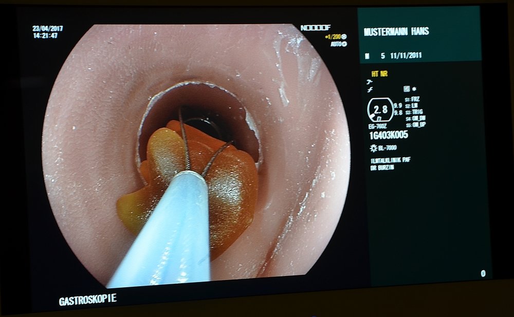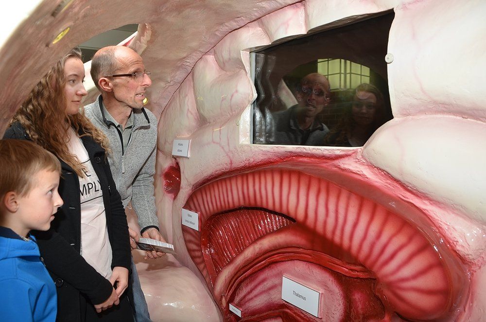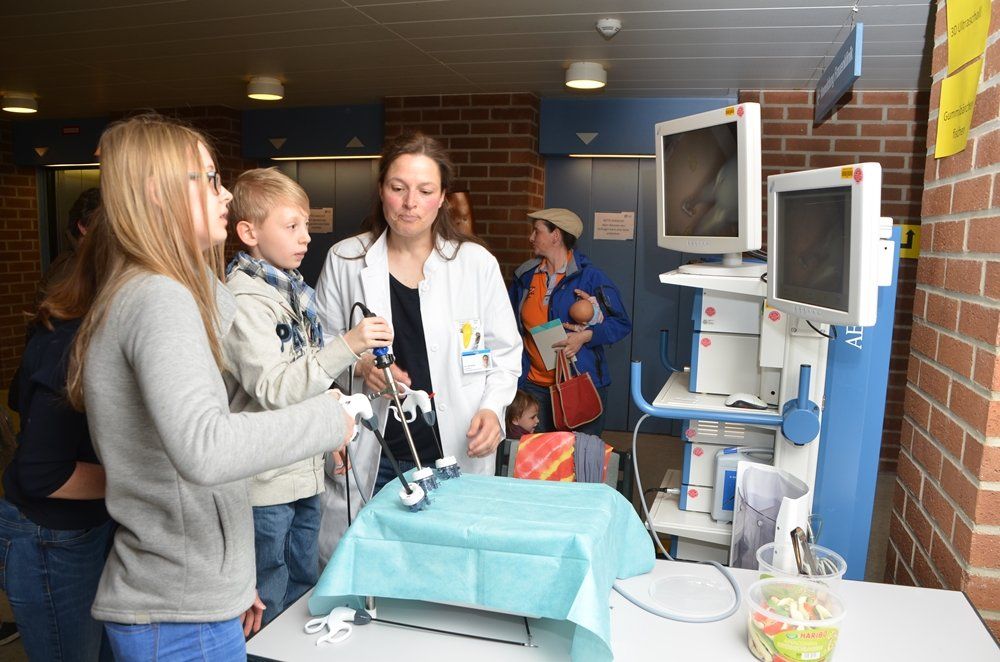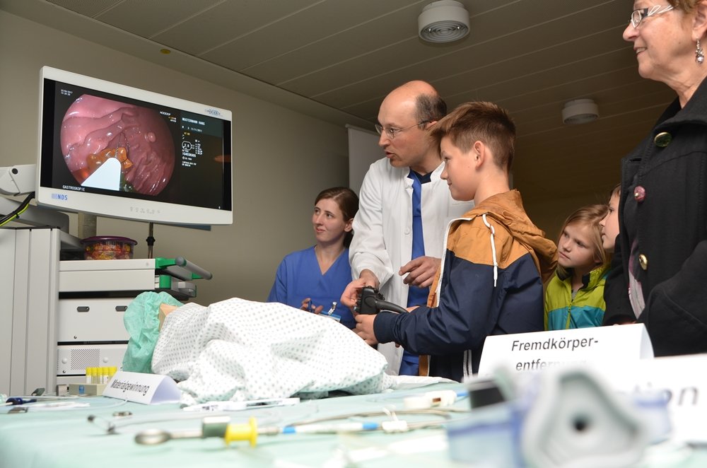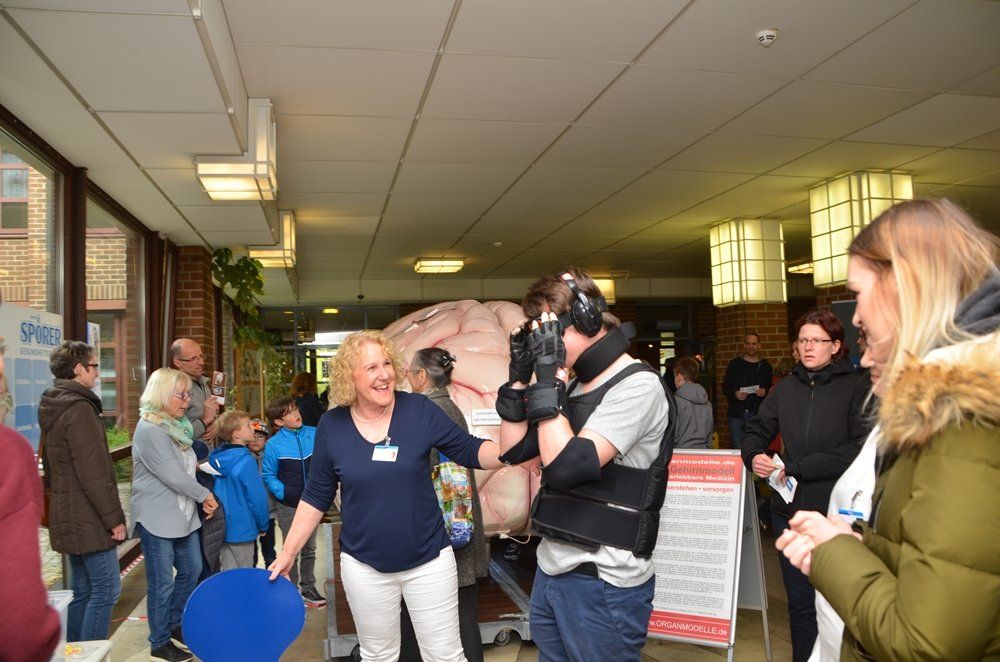 Das begehbare Gehirnmodell zog die Besucher ebenso an, wie auch die Vorführung einer Magenspiegelung anhand einer Puppe. Dabei konnten Interessiert sich sogar selbst als Gastroenterologe unter Mithilfe von Chefarzt Michael Burzin versuchen. Für Kinder waren dafür in einer Übungspuppe sogar einige Gummibärchen deponiert, die es galt, mit einer Schlinge herauszuholen.