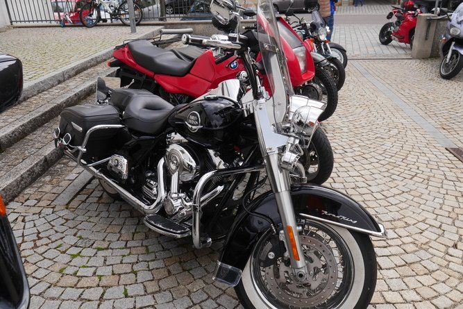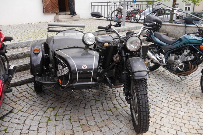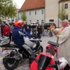 Wer heuer allerdings fehlte war Landrat Martin Wolf, der ja leider nach seinem Motorradunfall immer noch im Krankenhaus liegt. Beste Genesungswünsche an den überzeugten Motoradfahrer kamen von allen Anwesenden nebst Geistlichkeit. Die vielen Maschinen waren blank geputzt für den großen Auftritt und boten viel Anschauungsmaterial für Groß und Klein. Ob jetzt BMW oder Japaner, Moto Guzzi oder Harley, Cruiser oder Geländemaschine, für jeden Geschmack und Geldbeutel gibt es Fans. Den größten Zulauf hatte eine alte Beiwagenmaschine aus Rußland mit dem Aufdruck „Doktor Schiwago“, eine „Ural“ mit original sowjetischen Hoheitszeichen. Ob da der Russe jetzt eine alte BMW nachgebaut hat, oder die Marke ein Lizenz Produkt ist nicht ganz klar.