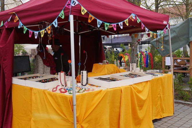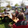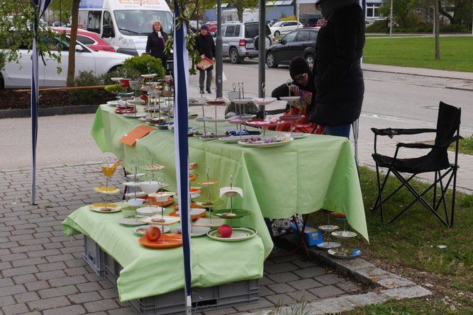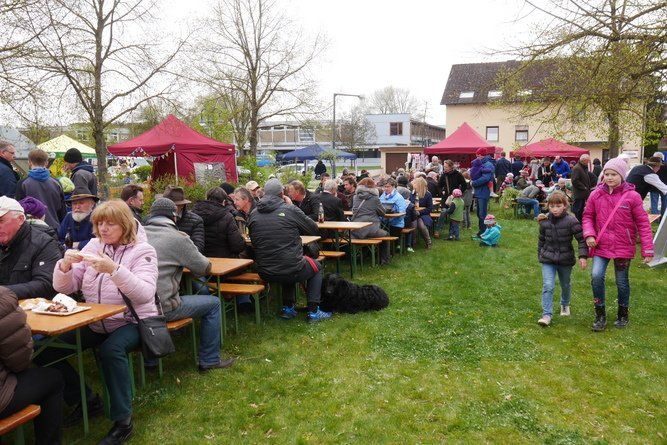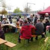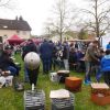 Der Waldkindergarten hatte viele Weiden mitgebracht, die von Eltern und Kindern in allerlei Nützliches verarbeitet wurden. Arbeiten macht hungrig, eine ganze Fressmeile sorgte für Abhilfe, die Preise waren moderat und die Getränke süffig. Viel Selbstgemachtes konnte an den verschiedenen Ständen erworben werden, der Phantasie waren kaum Grenzen gesetzt. Sogar lebende Pflanzen aus ökologischem Anbau, klingt komisch, ist aber so, wechselten den Besitzer.