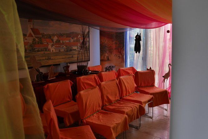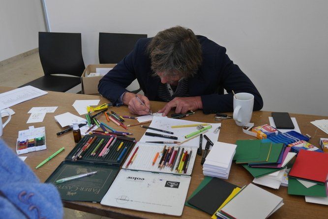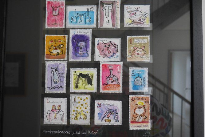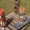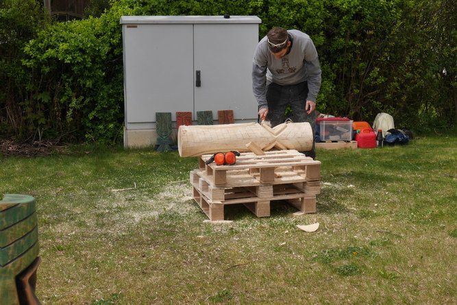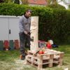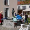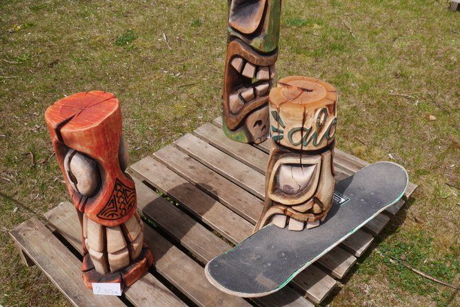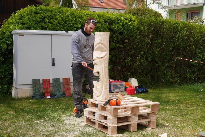 Im Rathaus selbst wurden Märchen in einem bezauberten Ambiente vorgelesen und die momentane Ausstellung konnte bewundert werden. Der Künstler Wolfgang Steinmeyer zeichnete lustige Wort- und Fingerabdruckbilder auch auf Anfrage, der Andrang war beträchtlich. Draußen vor der Tür flogen die Holzspäne, aus einem Baumstamm wird ein „Tiki“, ein Phantasiegesicht, das auch noch ein Skateboard zwischen die Zähne bekommt.