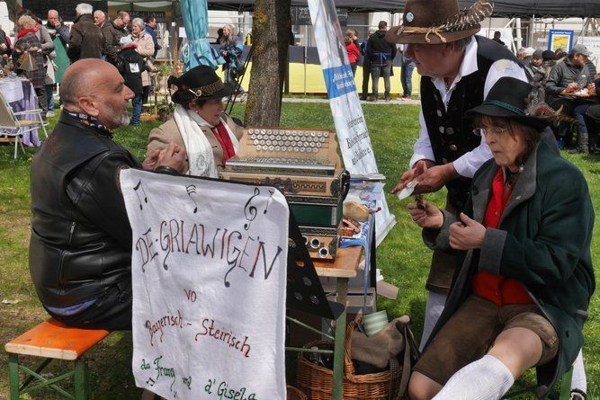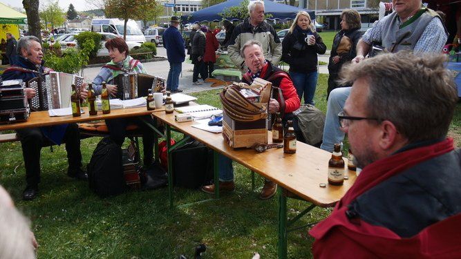 Die Wirtshausmusikanten, eine gesellige Rund von echten Volksmusikanten, spielten „live and unplugged“ im „Woid is schee“ und andere bekannte Lieder zum Mitsingen. Der Förderverein Bairische Sprache und Dialekte e.V. informierte dazu über die heimische Sprache an und für sich. Eine gelungene Symbiose, die ohne Heimat Tümelei auskommt.