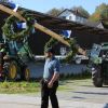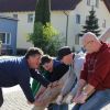 Wenn fast die ganze männliche Dorfgemeinschaft mitanpackt, dann geht es schnell. Und trotzdem ist immer wieder fachmännische Vorsicht geboten. Denn bei einem solchen Kraftakt kann auch schnell mal etwas schiefgehen, wenn man nicht aufpasst. Das Holen des Baumes aus dem Wald, das Schälen und Schmücken und schließlich das Aufstellen sind allerdings schon Tradition in Steinbach und deshalb verlief das Ganze ohne Unfälle. Um kurz nach vier uhr nachmittags wurde begonnen, Meter um Meter gewann der Baum an Höhe bis er schließlich nach einer guten Stunde und kräftigen "Haurucks" in voller Pracht dastand.
