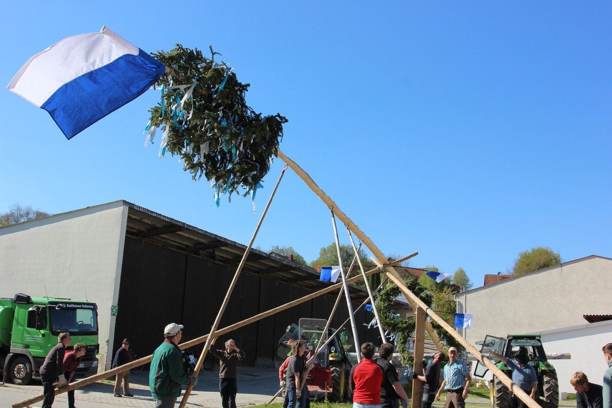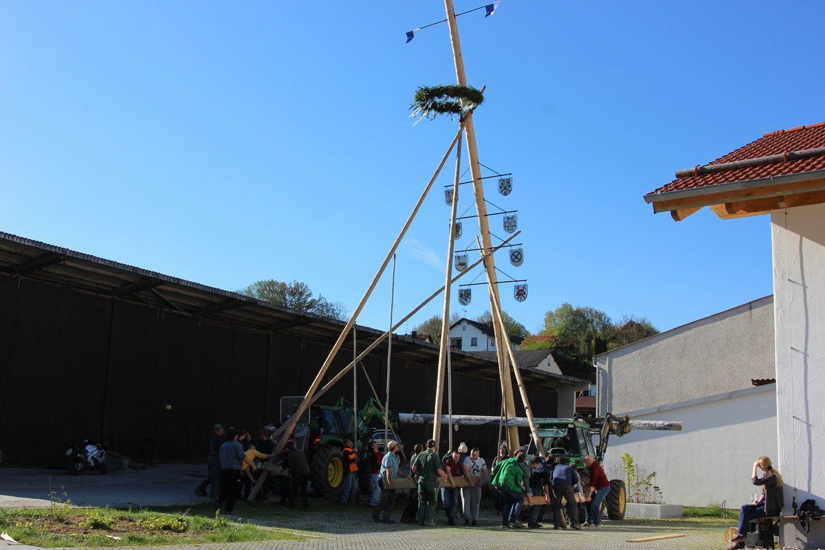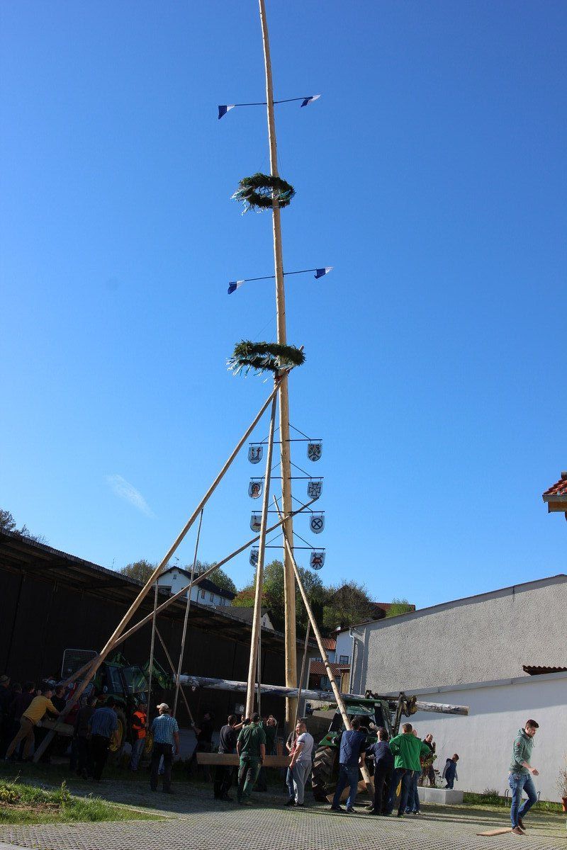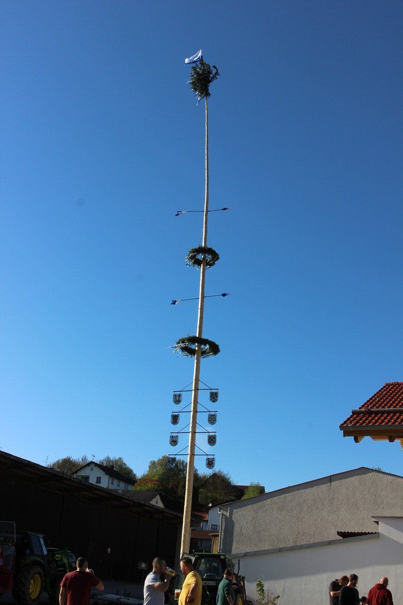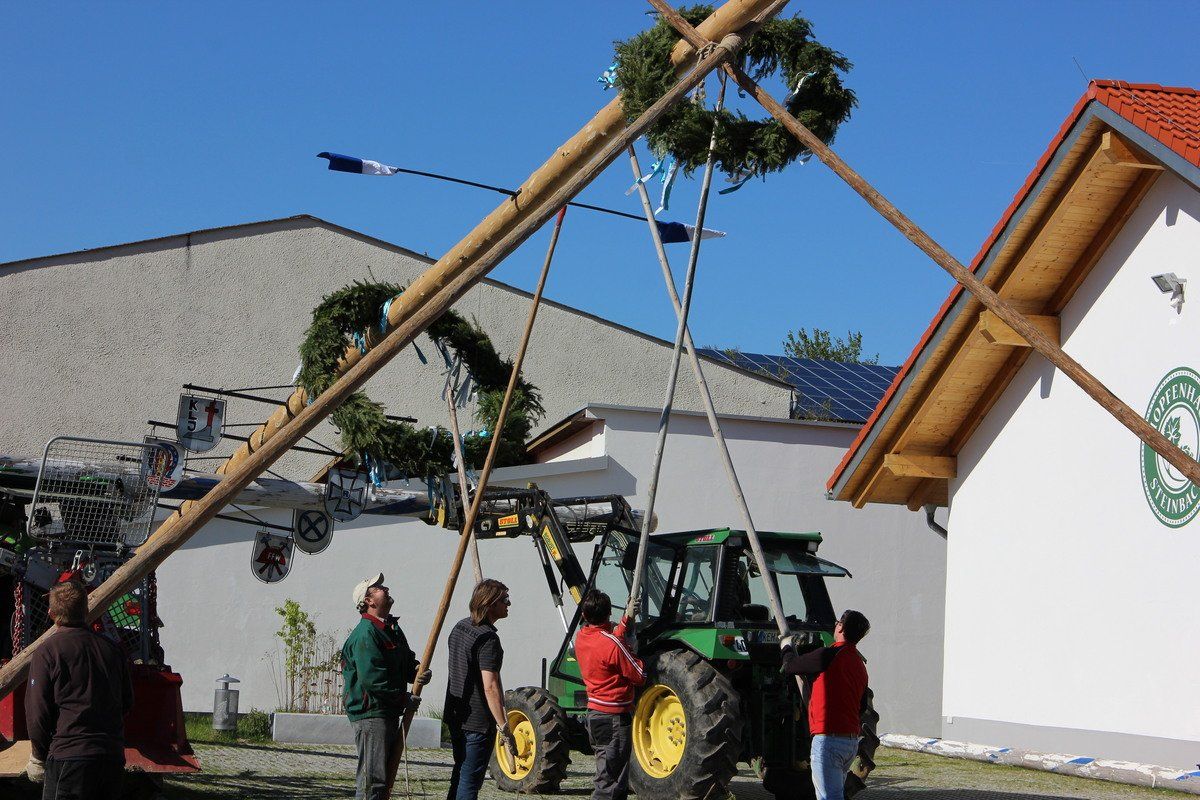 Endlich steht er, der nagelneue Maibaum in Steinbach. Das stolze 31 Meter hohe Stangerl – heuer sogar am Gipfel mit Lichterkette ausgestattet - überragt ab sofort den Dorfplatz direkt neben dem Hopfenhaus. Mit versammelter Manneskraft dauerte der Hebeakt eine gute Stunde bis er wie eine Eins dastand. Das Wetter tat sein Übriges und so kann man zurecht von einem Maibaumaufstellen, wie es im Buche steht, sprechen.
