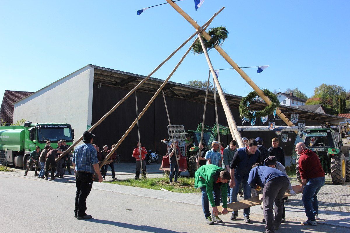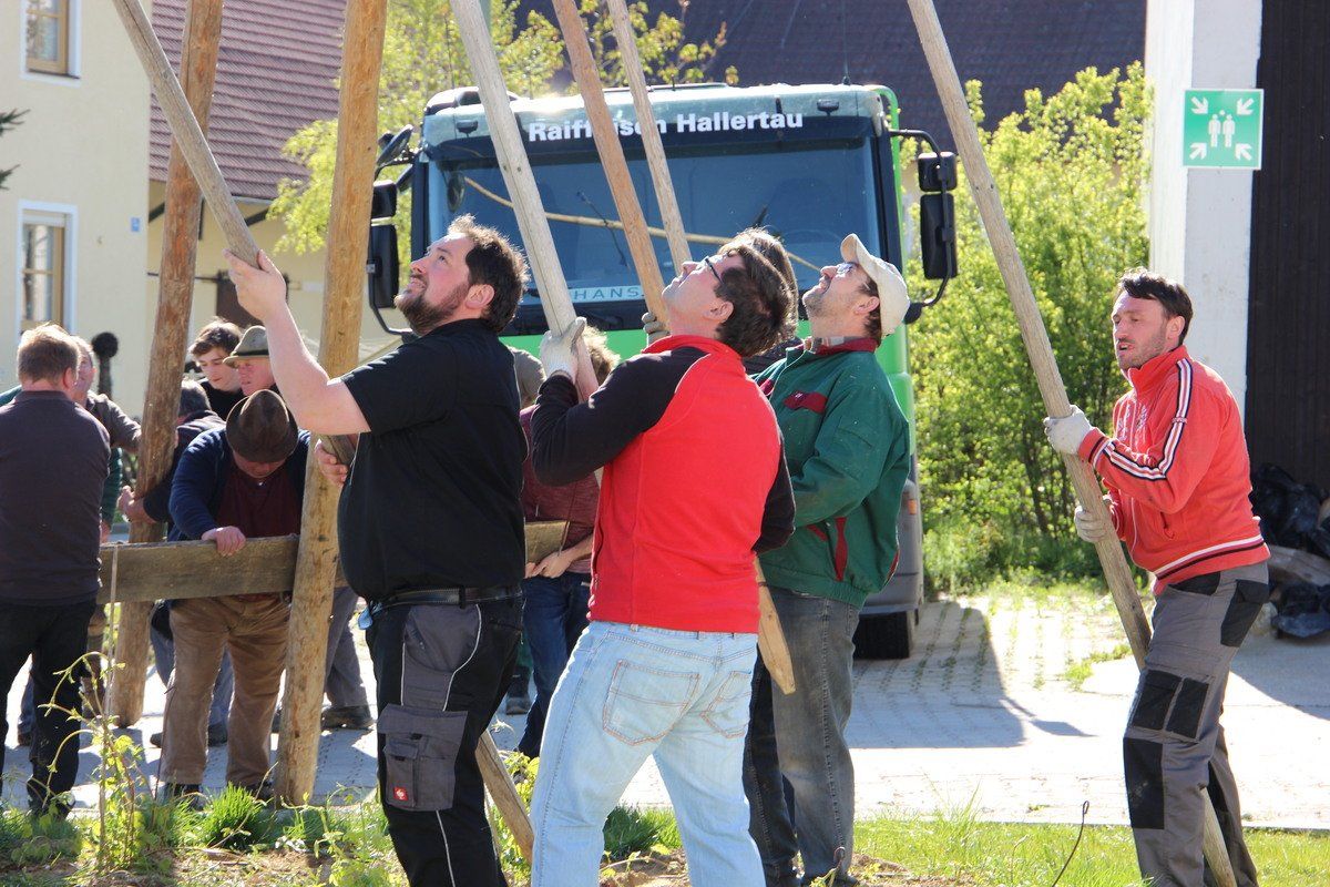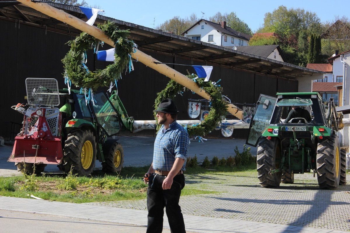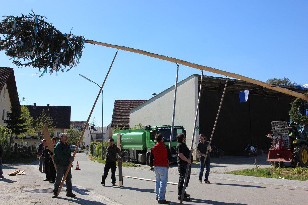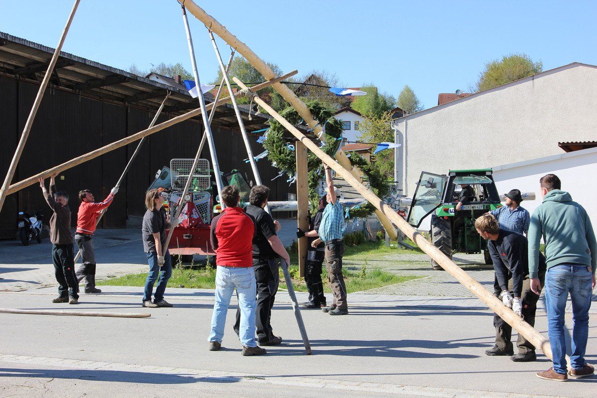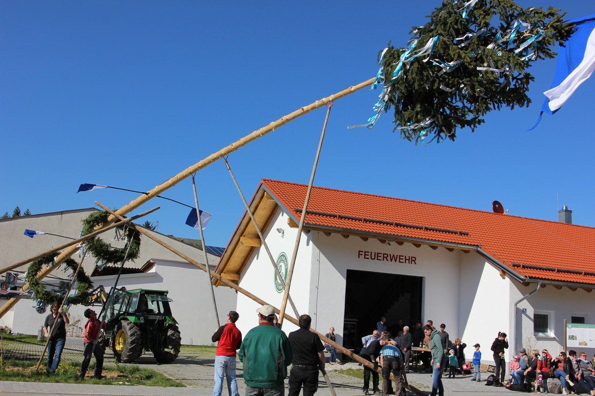 Endlich steht er, der nagelneue Maibaum in Steinbach. Das stolze 31 Meter hohe Stangerl – heuer sogar am Gipfel mit Lichterkette ausgestattet - überragt ab sofort den Dorfplatz direkt neben dem Hopfenhaus. Mit versammelter Manneskraft dauerte der Hebeakt eine gute Stunde bis er wie eine Eins dastand. Das Wetter tat sein Übriges und so kann man zurecht von einem Maibaumaufstellen, wie es im Buche steht, sprechen.