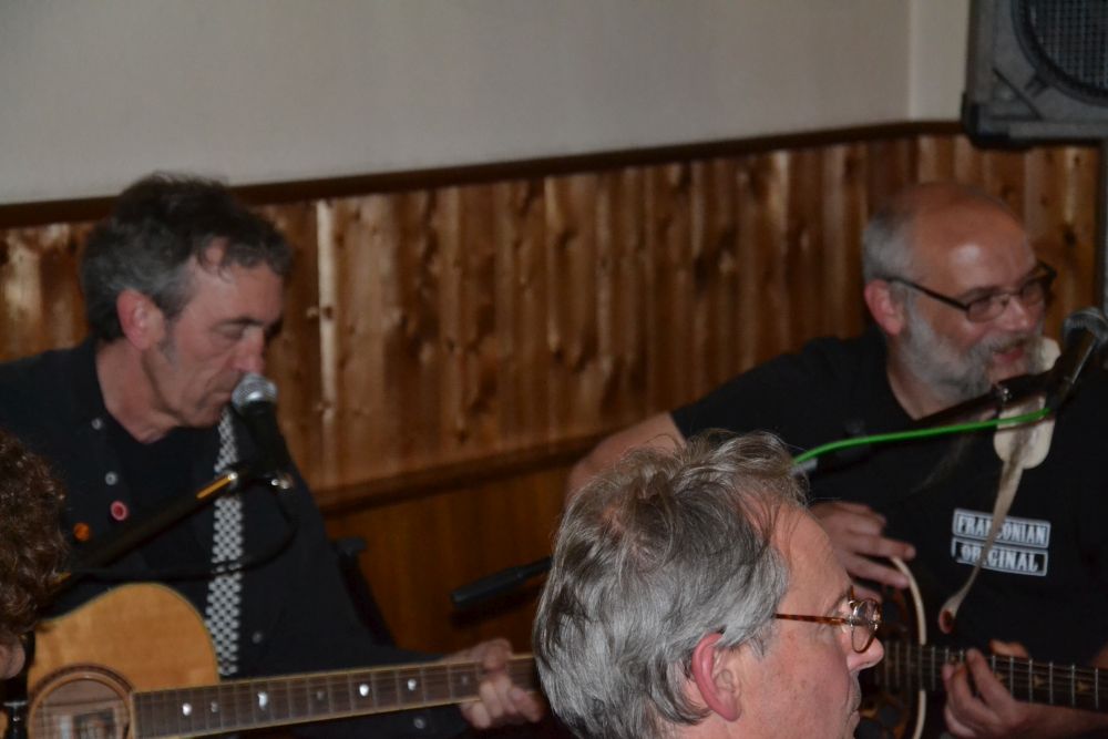 Und das Schöne an den vier Musikern ist, dass sie gemeinsam auch die Stücke der anderen spielen, so dass es eine wahre Freude ist zu sehen, wie drei der Kapellmeister ein Stück des anderen zusammen mit ihm spielen. Da wippen bei den Gästen die Fußspitzen und teilweise gehen die Schultern mit und es sind immer wieder die Frauen, die im Stehen ihren Körper wie im Tanz wiegen und bewegen. Und zwischen den Musiker fetzt hin und wieder auch ein kleiner Joke, so wie nach dem Song „Ich krieg dich nicht mehr aus mei´m Kopf‘‘,dann kam die Antwort: „Das ist die schönste Liebeserklärung, die ich in den letzten Jahren gekriegt habe“. Und als ein Stück von Muskel Appels Band A Baker´s Dozen gespielt wurde, da ging „die Post ab“, alle Gäste klatschten begeistert mit. Bei den Songs ging es immer gemischt zu, je nach dem wessen Songs gerade gespielt wurden – mal bayrisch, mal englisch, einfach Folk-Rock vom Feinsten.