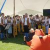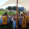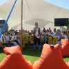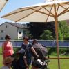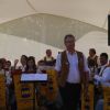Dicht gedrängt im Schatten des Zeltes, spielten dann die Musiker ihr spannendes Programm mit viel Humor. Leider waren die zwei Bildschirme auf denen Ausschnitte des Disney Klassikers als Begleitung gezeigt wurden, kaum zu erkennen, doch auch so war die Aufführung ein voller Erfolg.