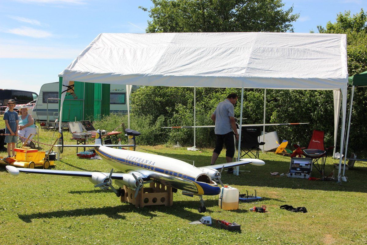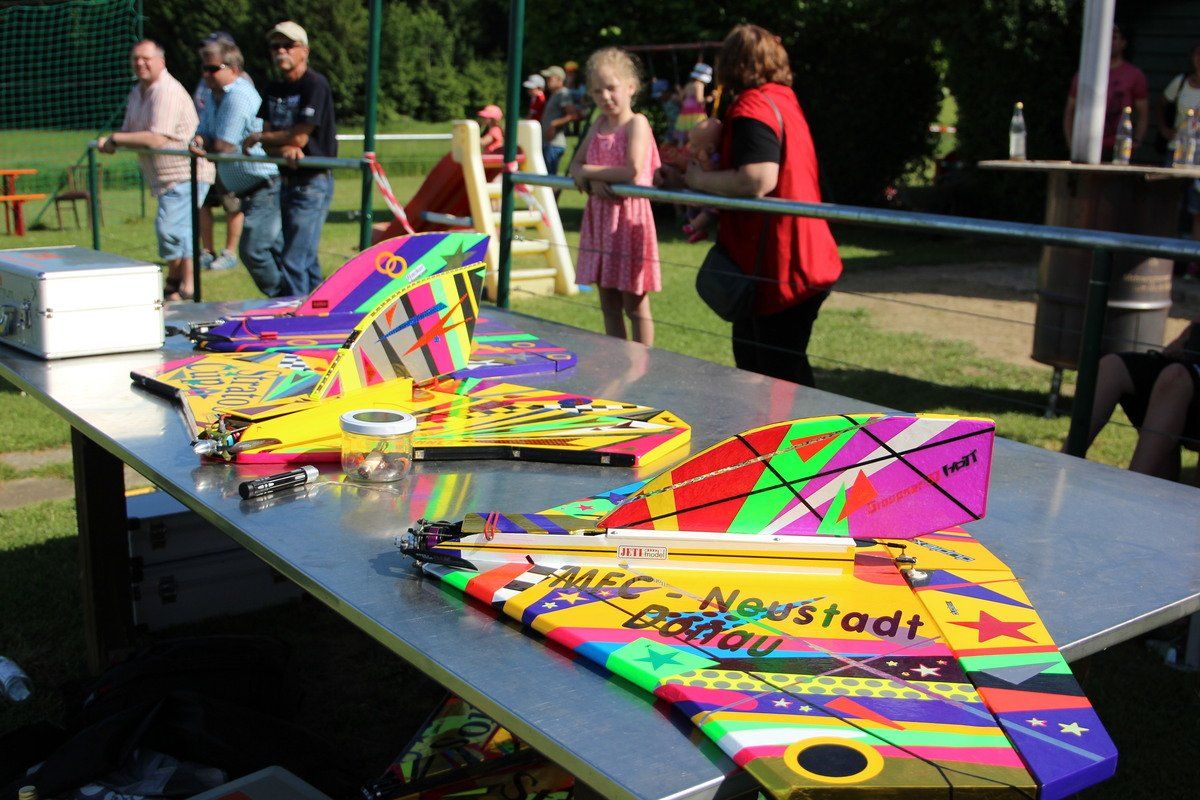 Um den Familiencharakter hervorzuheben, hatte der MBC Ikarus für die Kinder extra den „Guatlbomber“ und lustige Modelle wie fliegende Rasenmäher organisiert. Die Verpflegung kam selbstverständlich nicht zu kurz. Unter einem schattenspendenden Fallschirm ließ es sich bei Kaffee und Kuchen sowie Gegrilltem und einer kühlen Mass besonders gut aushalten.