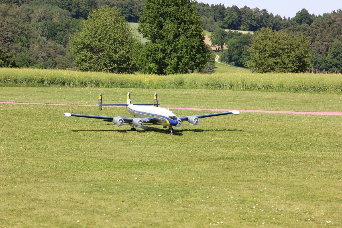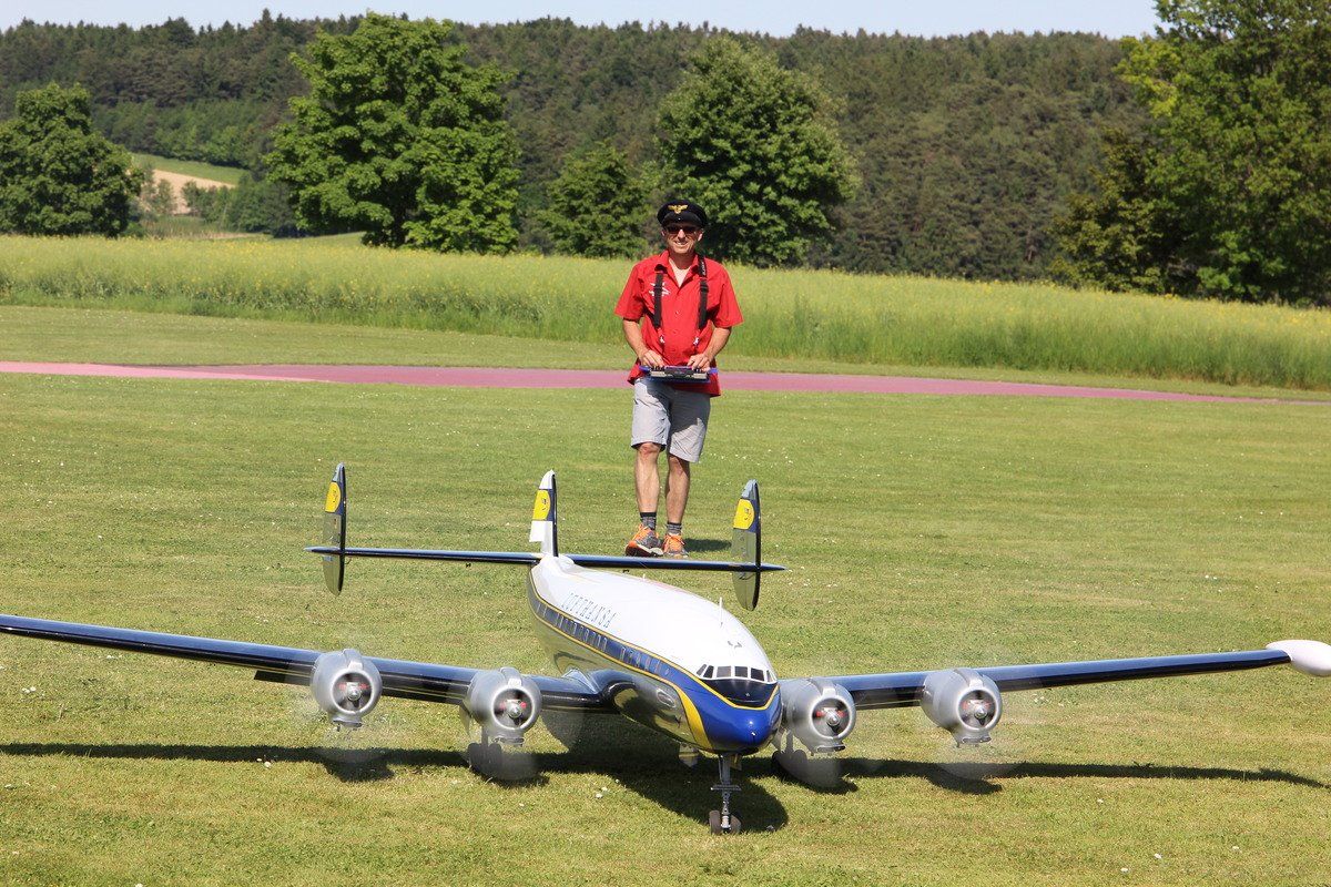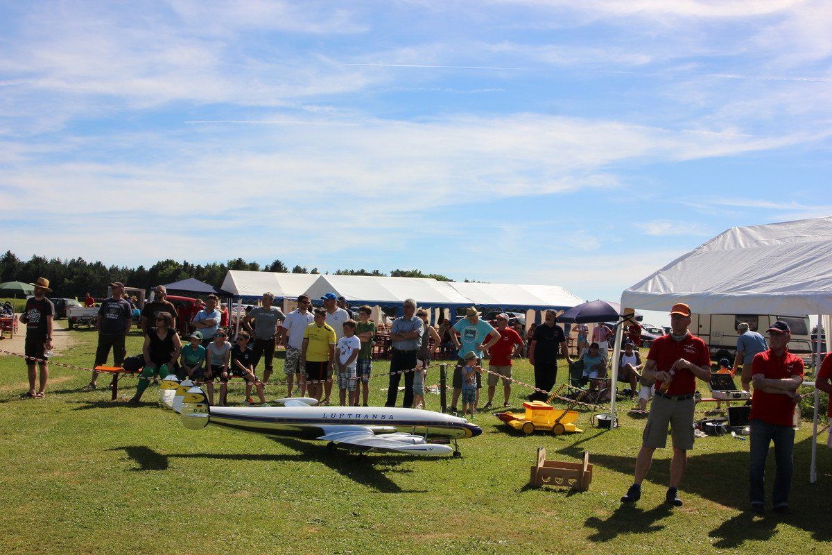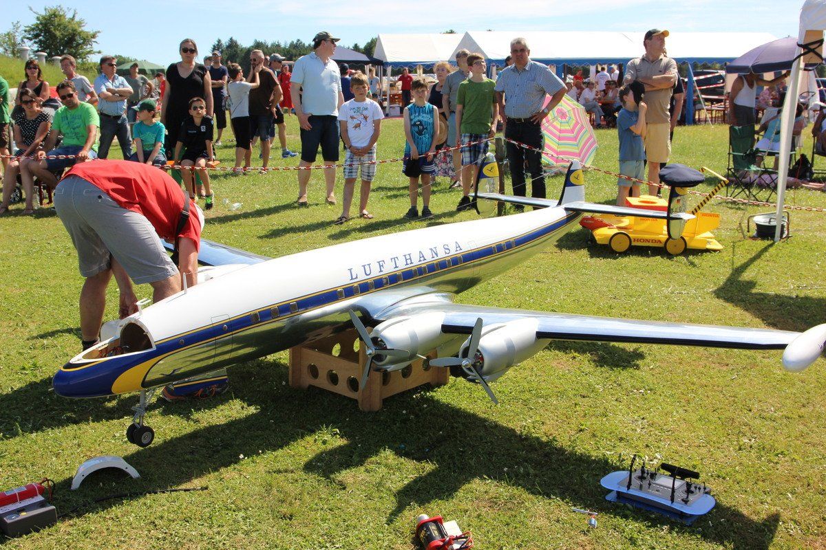 Am Sonntag präsentierten Spitzenpiloten aus der Modellflugszene ihr Können beim Großflugtag mit ihren privaten Glanzstücken. Die Bandbreite an Fliegern war bemerkenswert, Modelle wie den "Euro Fighter" und die "Super Constellation" (Lufthansa Passagierflugzeug) - gänzlich dem Original nachempfunden - sah man in voller Action in der Luft. Vom hochpreisigen Fertigflieger auf dem Niveau eines Kleinwagens bis hin zu Spaßmodellen aus Baustyropor war alles dabei. Gezeigt wurden u.a. Oldtimer-Flugzeuge, mehrmotorige Großmodelle aus der Anfangszeit der Verkehrsfliegerei sowie Hightech-Modellflieger mit echtem Gasturbinenantrieb. Daneben boten Hubschrauber, Segel- und Leichtschaumflieger ein echtes aerodynamisches Spektakel.