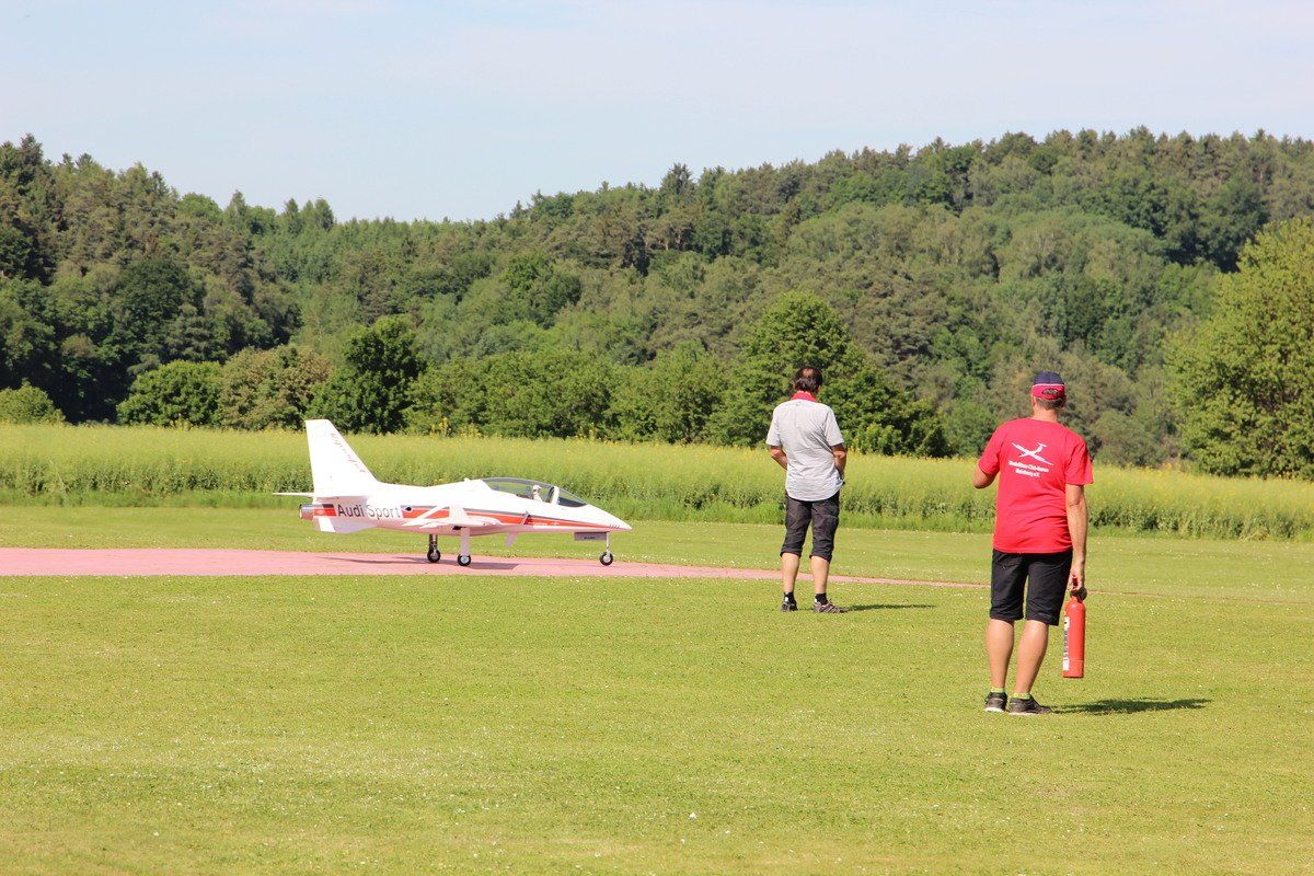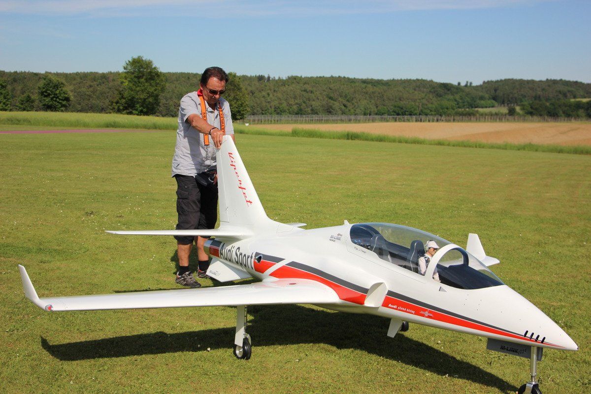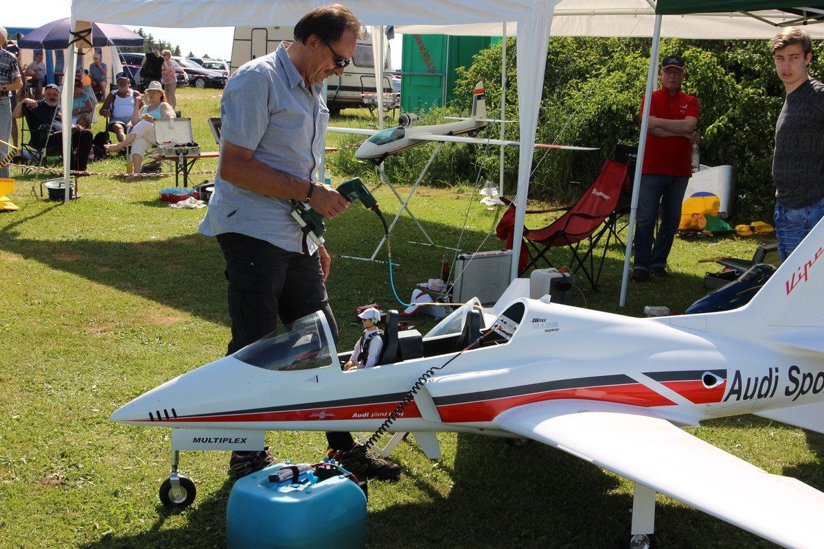 Sepp Mögn, mehrfacher bayerischer Meister und ehemaliger Vizeweltmeister im Modellflug mit seinem Viperjet