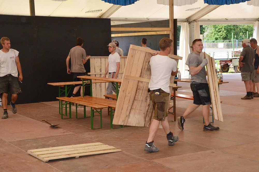 Ein zwölfköpfiger Fest-Ausschuss kümmert sich zusammen mit der gesamten Ortsbevölkerung, darum, dass die Festtage unvergesslich bleiben. „Wirklich alle helfen mit“, freuten sich am heutigen Nachmittag Feuerwehr-Vorsitzender Christian Riedmeier und Feuerwehrkommandant Georg Riedmeier. Zelt nebst Bühne stehen übrigens schon und dieser Tage müssen von den vielen Helfern nur noch Bänke und Tische aufgestellt werden.