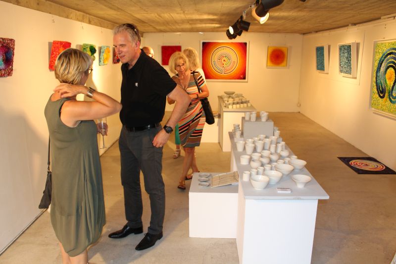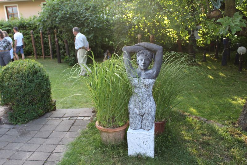 Ein reines Vergnügen für alle Besucher war die gestrige Ausstellungseröffnung „Kunst in Osterwaal“. Der idyllische Garten von Jutta und Jürgen Weichmann bot bereits zum 17. Mal eine hervorragende Kulisse, um Keramik, Skulpturen, Bilder und Schmuck zu präsentieren. Das Schneider-Lenz-Anwesen wurde erneut zum Mittelpunkt der Kunst auf dem Land.