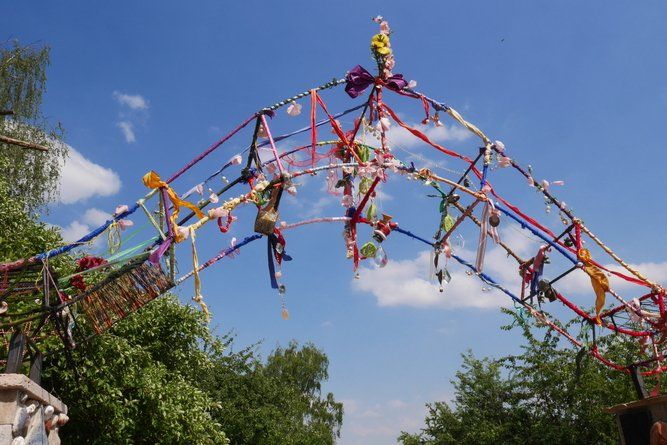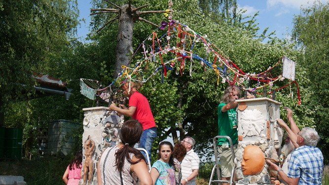 „Friedenstor - Soziale Skulptur Hallertauer -Das fertige Tor steht als Symbol für das Wahre, Schöne und Gute. Ein Symbol für den Frieden. Jede und Jeder kann durch diese Gestaltungsaktion seine Friedensbotschaft gemeinsam mit anderen in die Welt in das gesamte Universum senden.