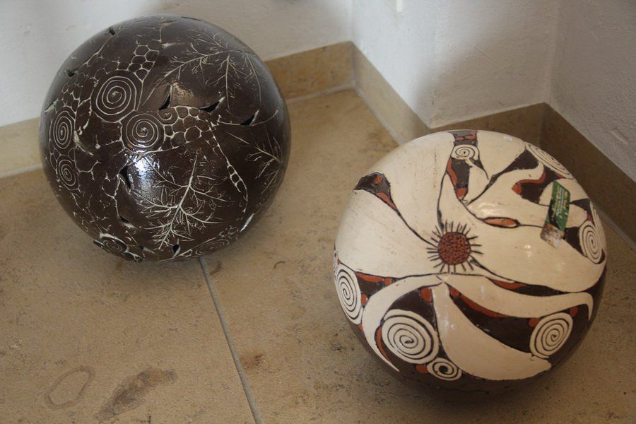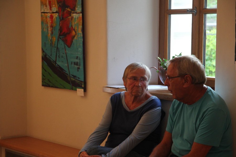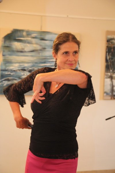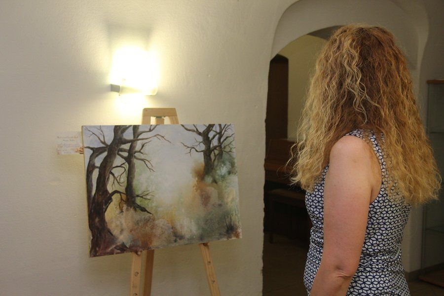 Auch Renate Heller stellte unter Nathalie Ponsots Schirmherrschaft ihre Arbeiten zur Verfügung. Mit ihren Tonstücken fügte sie dem Materialmix der Ausstellung eine weitere Komponente hinzu. Filigran gearbeitete Kugeln oder der Torso einer Frau ließen ihre Handwerkskunst erahnen. Durch ihre Reisen in die Toskana und an den Gardasee haben es der Geisenfelderin vor allem die zarten Aquarell-Töne angetan. Auch für ihre Gemälde ließ sie sich davon inspirieren und nutzt dafür oft ähnliche Techniken, wie man sie bei der Frescomalerei findet.