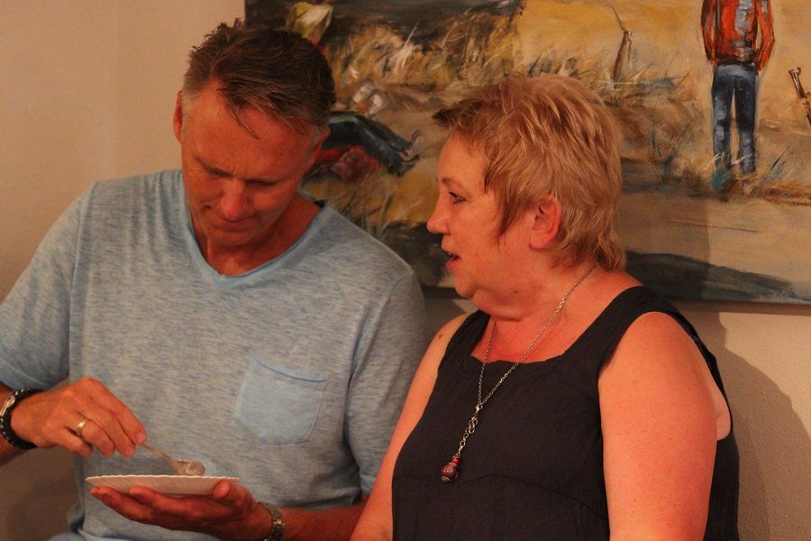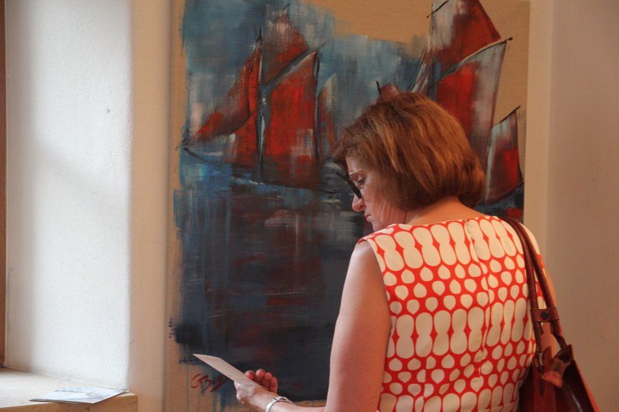Die Werke von Gabriele Beer überraschten mit stimmigen Farben und komplexen Techniken. Auf alten Kaffeesäcken lässt sie das ferne Kuba aufleben. „Es ist so schwierig, auf dieses Material Farbe zu bekommen. Gerade diese Herausforderung macht für mich den Reiz aus“, so Beer, die seit ihrem 40. Lebensjahr als Vollblutkünstlerin in Erscheinung tritt.