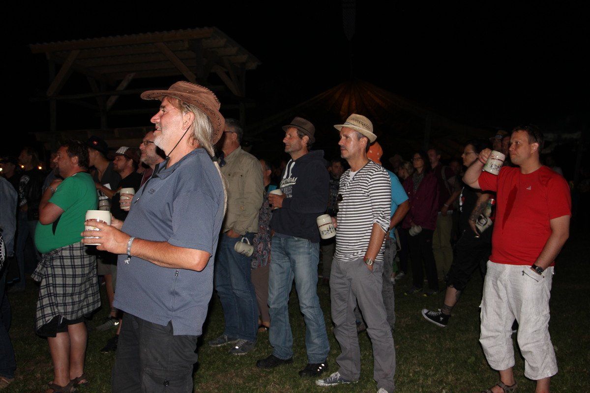 Obwohl deren Auftritte von einem schweren Regenschauer heimgesucht wurde. Die meisten jedoch hatten sich schon den ganzen Tag und sicherlich auch die halbe Nacht über hauptsächlich von „Flüssignahrung“ ernährt und ließen sich die Stimmung nicht verderben.